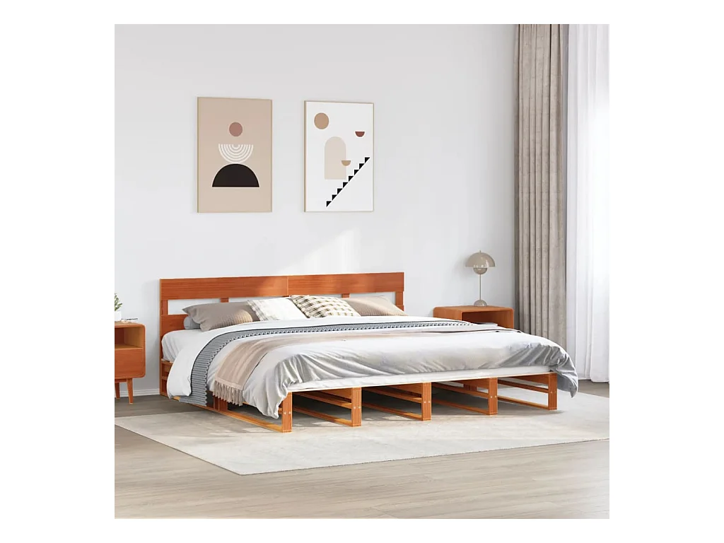 Cadre de lit sans matelas cire marron 180x200cm bois pin massif