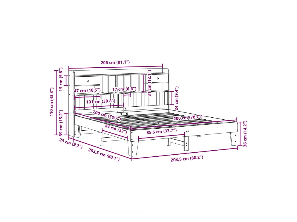 Cadre de lit sans matelas cire marron 200x200cm bois pin massif