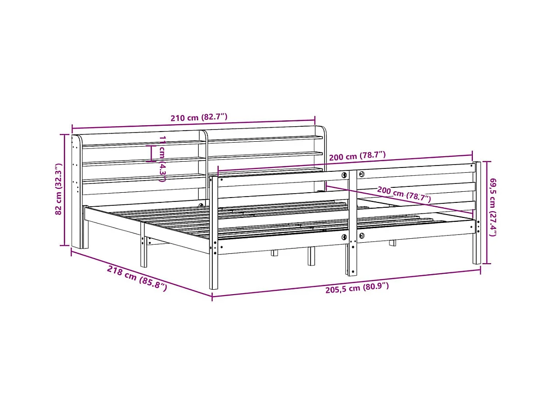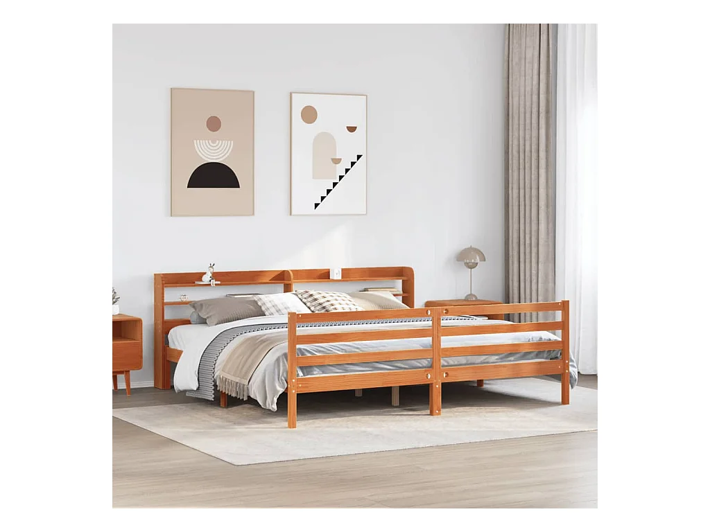 Cadre de lit sans matelas cire marron 200x200cm bois pin massif