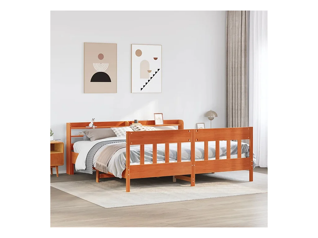 Cadre de lit sans matelas cire marron 200x200cm bois pin massif