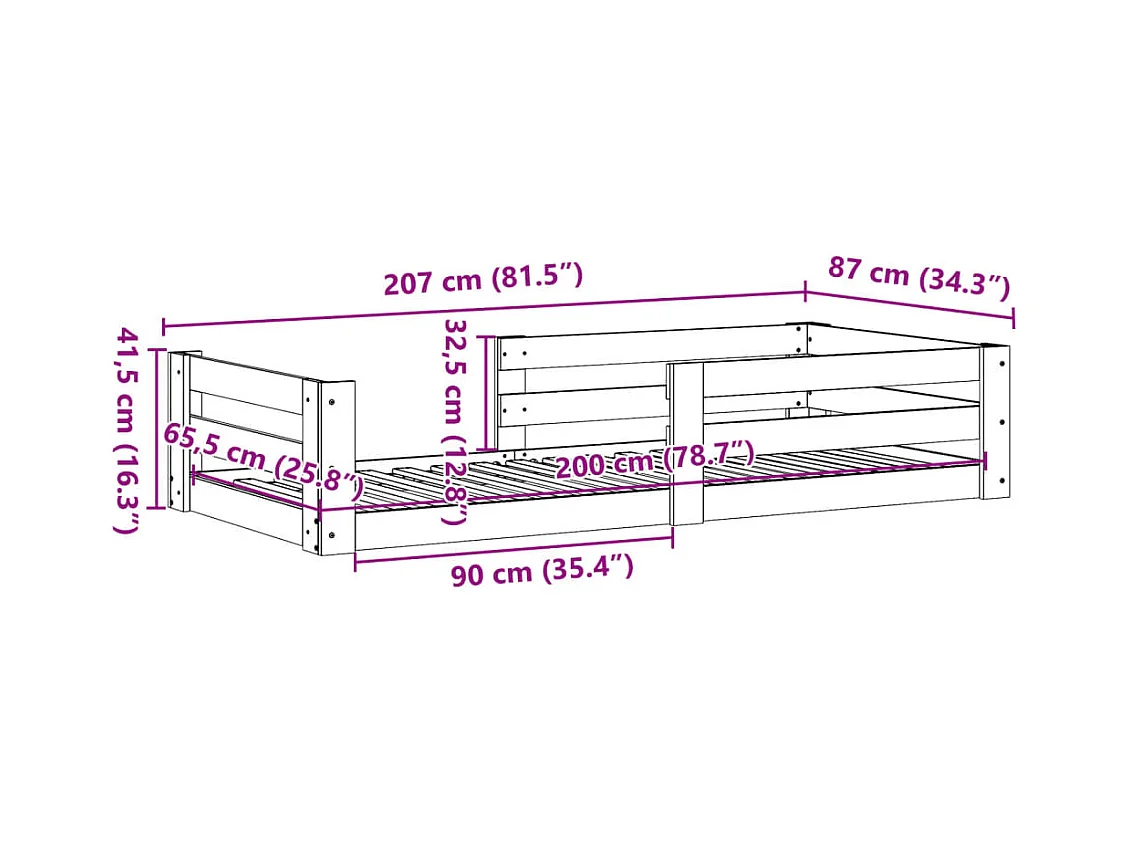 Cadre de lit superposé sans matelas 80x200cm bois massif de pin