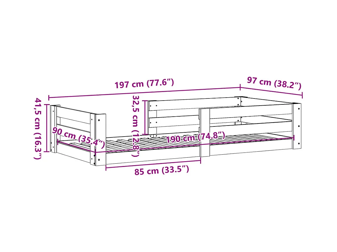 Cadre de lit d'enfants et tiroirs 90x190 bois de pin massif