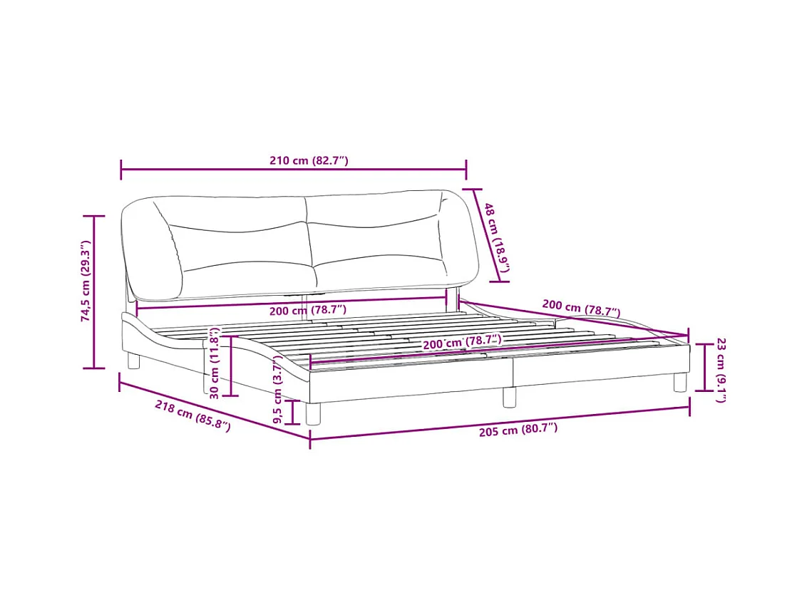 Cadre de lit sans matelas Hvar crème 200x200 cm tissu