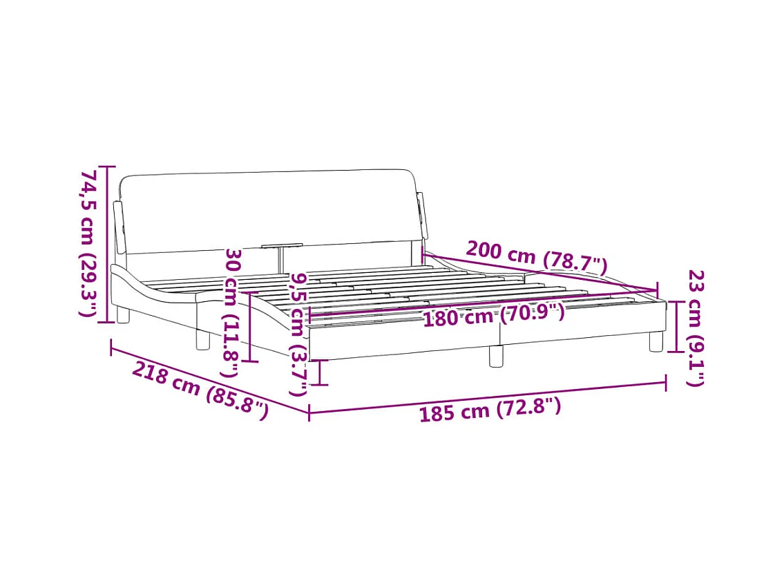 Cadre de lit sans matelas gris foncé 180x200 cm tissu