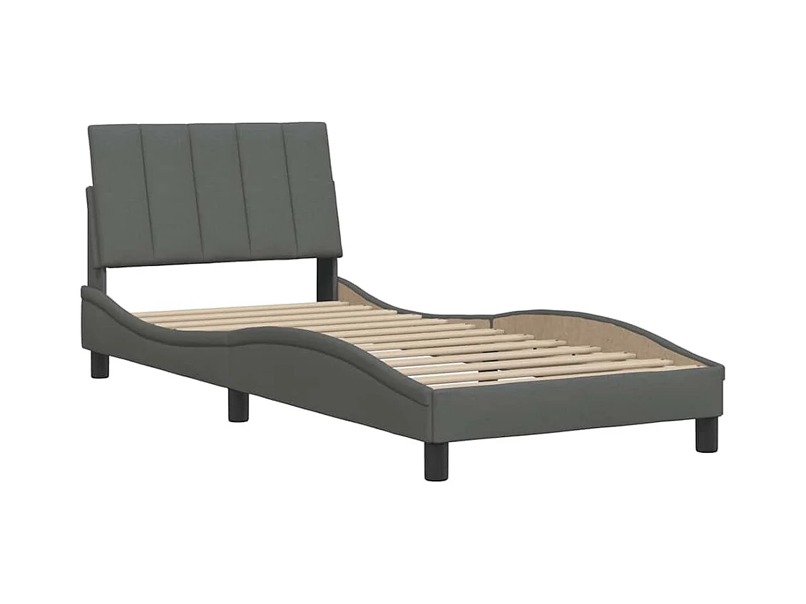 Cadre de lit sans matelas Hanko gris foncé 90x190 cm tissu