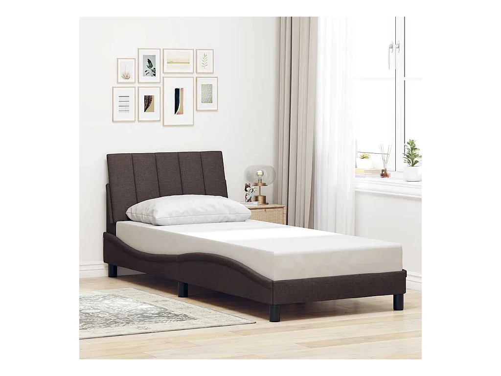 Cadre de lit sans matelas marron foncé 90x200 cm tissu