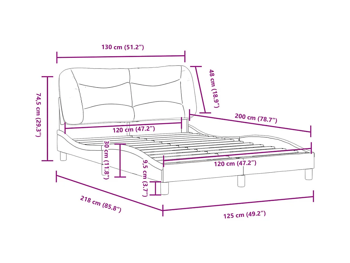 Cadre de lit sans matelas noir 120x200 cm tissu
