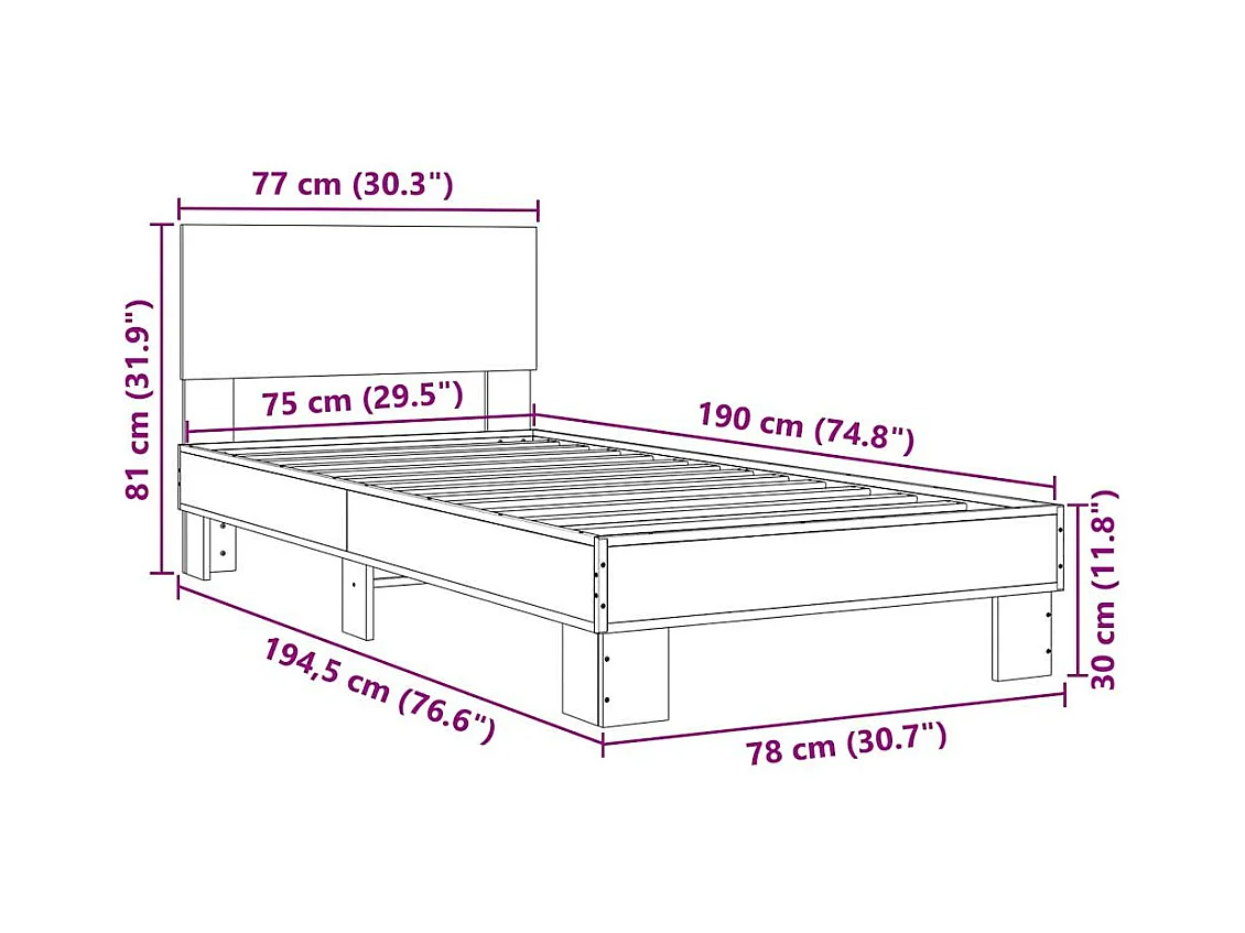 Cadre de lit sans matelas chêne fumé 75x190 cm