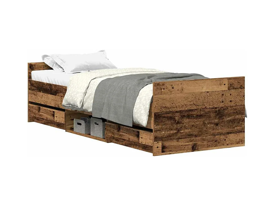 Cadre de lit sans matelas vieux bois 90x200 cm bois ingénierie