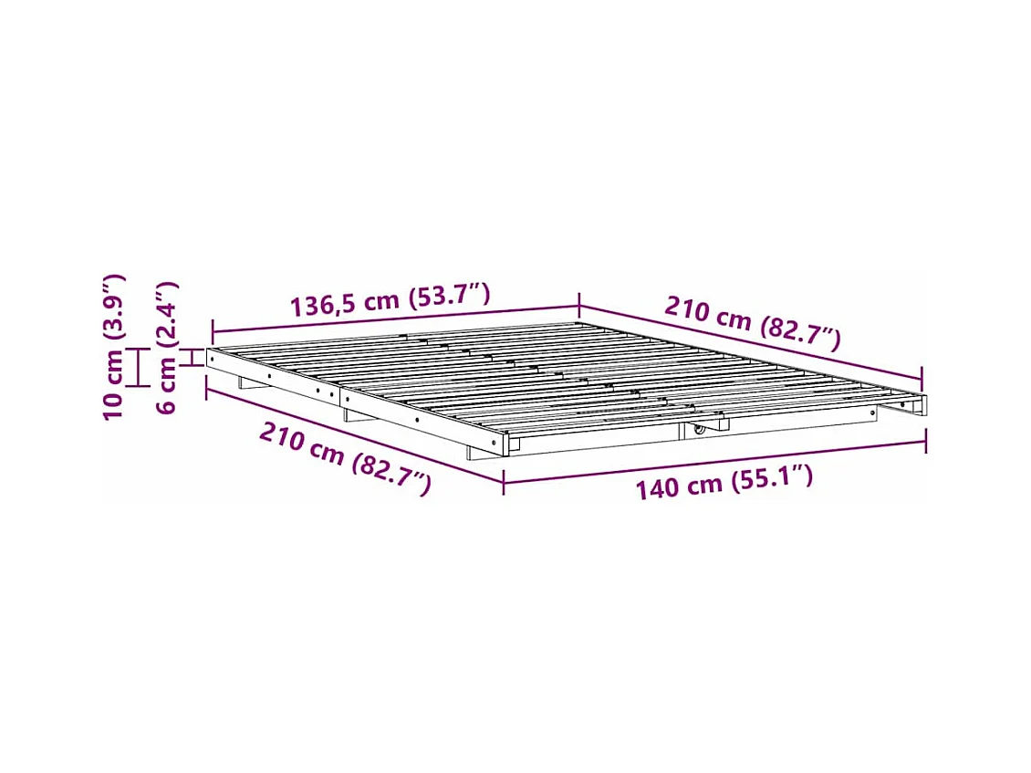 Cadre de lit de palette Bois de pin massif 140 x 200 cm