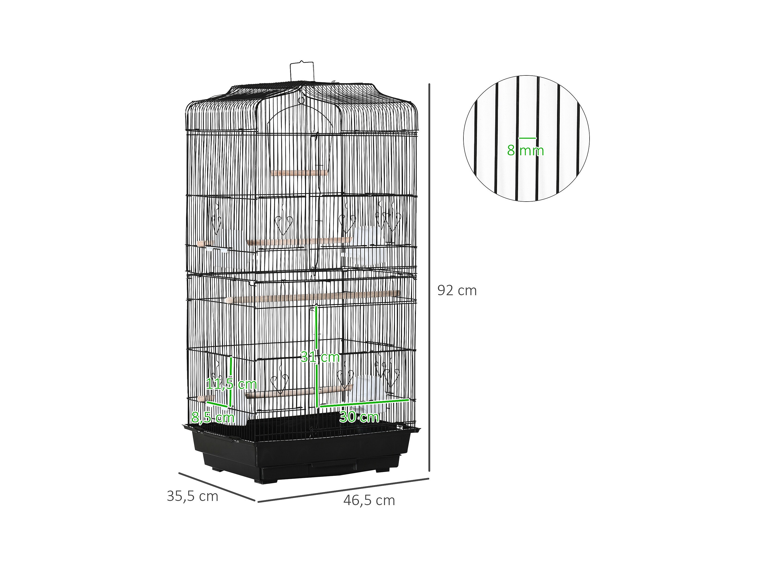 Cage à oiseaux volière avec mangeoires perchoirs plateau amovible dim. 46,5L x 35,5l x 92H cm métal PS noir