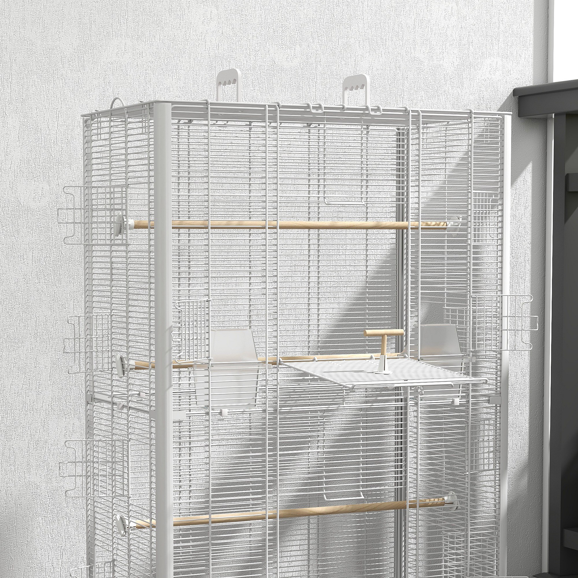 Cage à oiseaux volière avec portes perchoirs - 61 x 36,5 x 98 cm - blanc