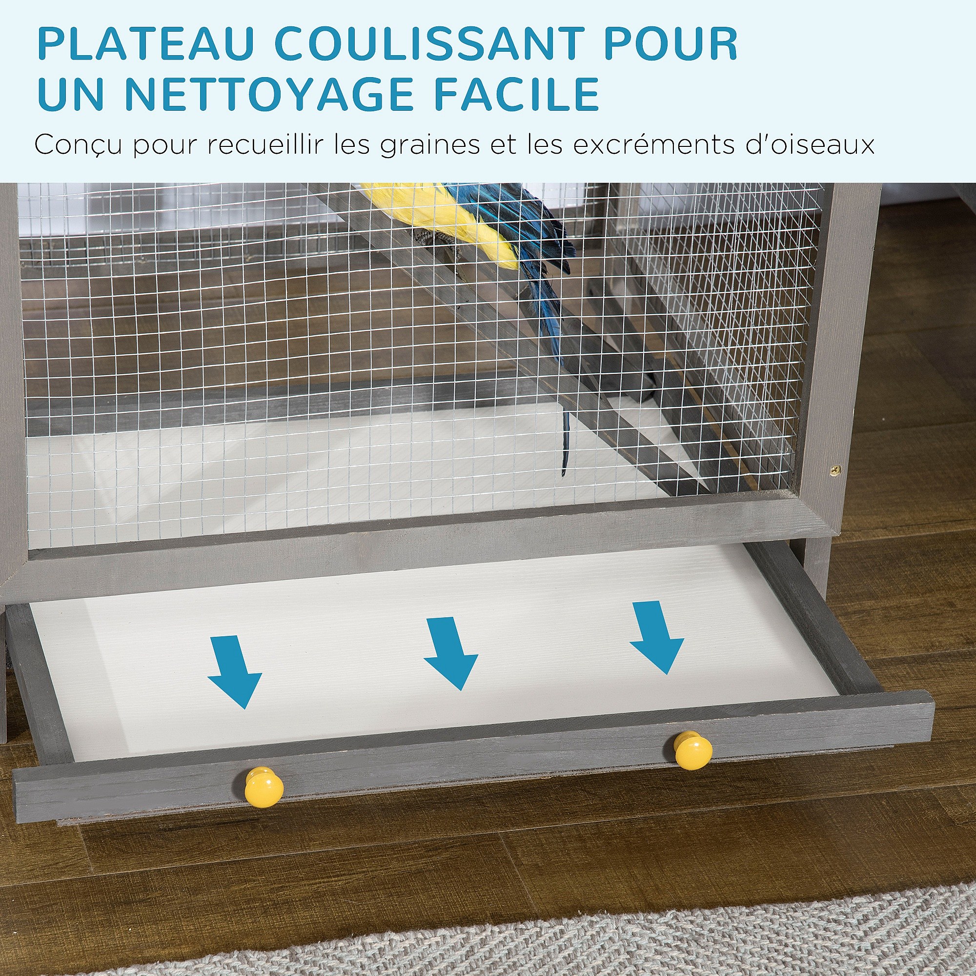 Cage à oiseaux volière grande taille 2 portes toit asphalte tiroir amovible bois gris