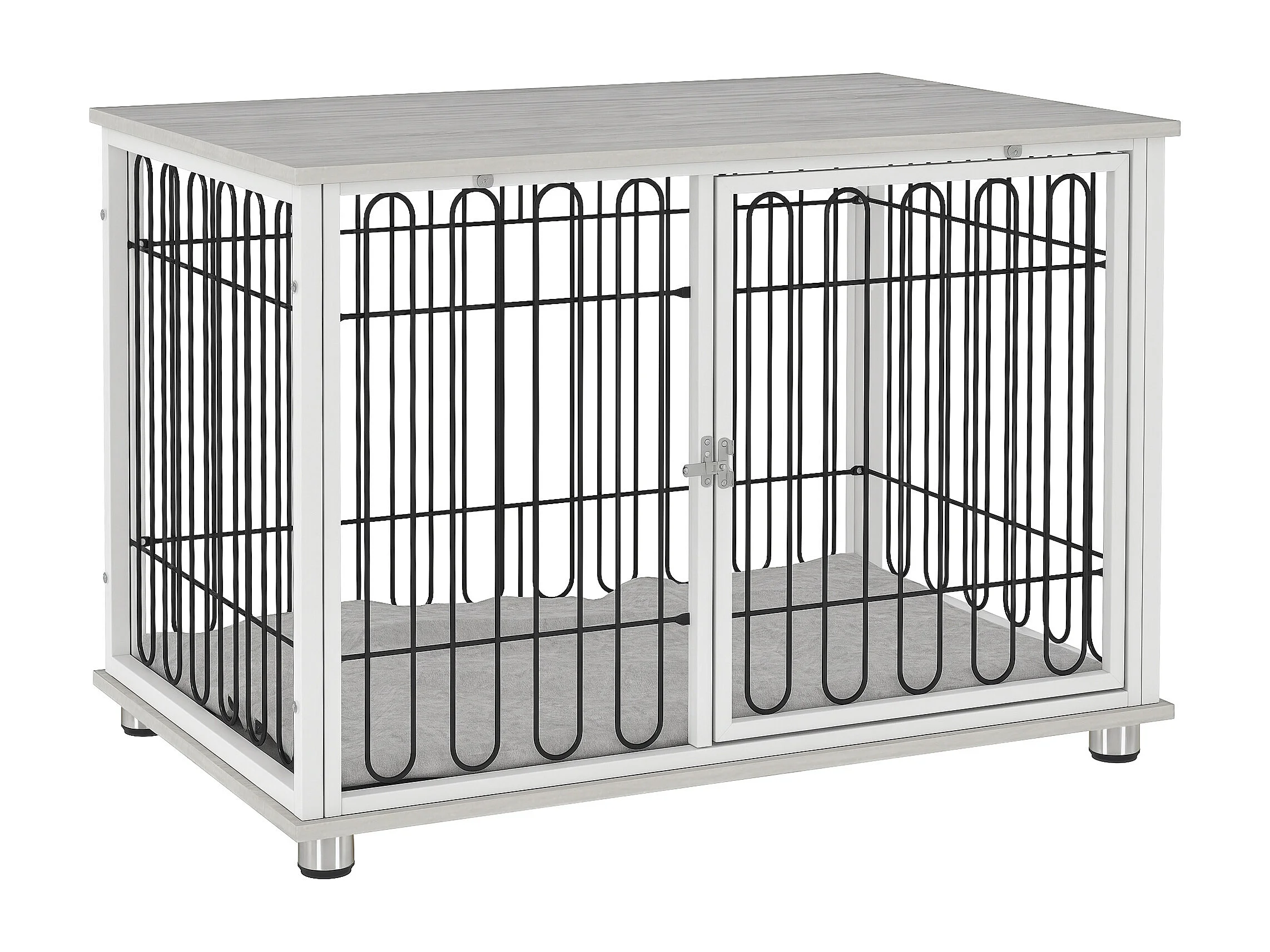 Cage chien avec coussin 90 x 58 x 62 cm - porte verrouillable - effet bois gris clair acier blanc noir