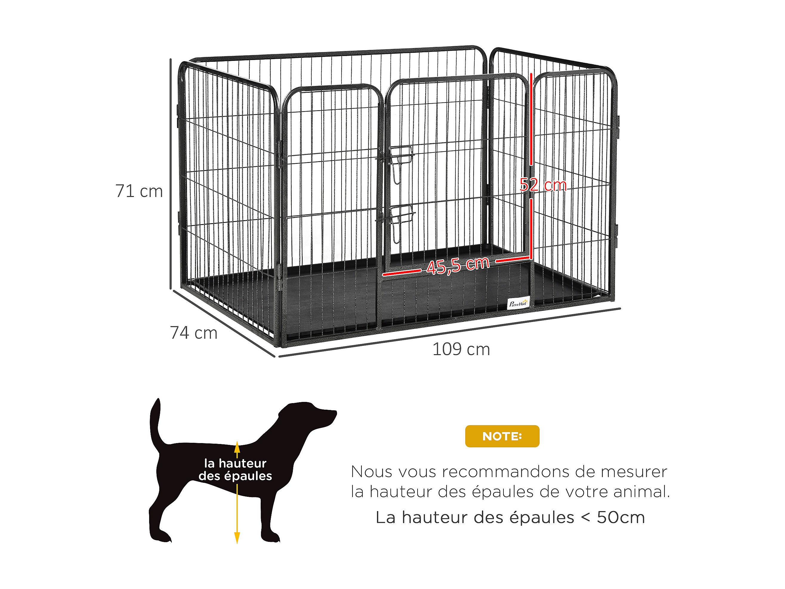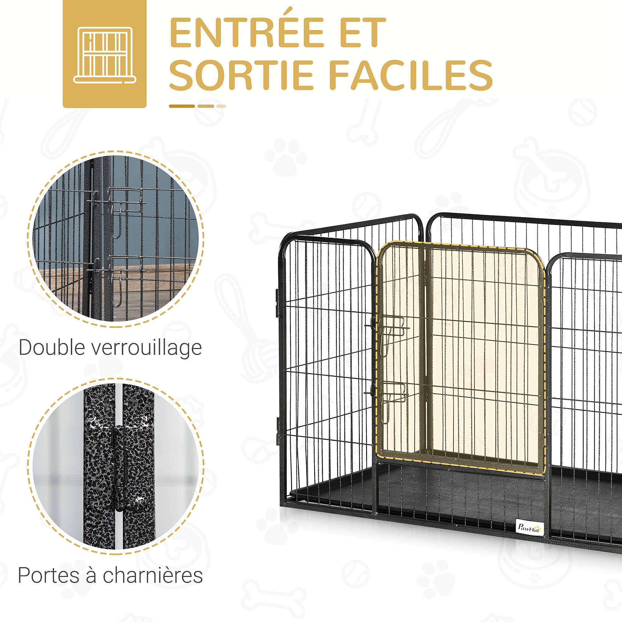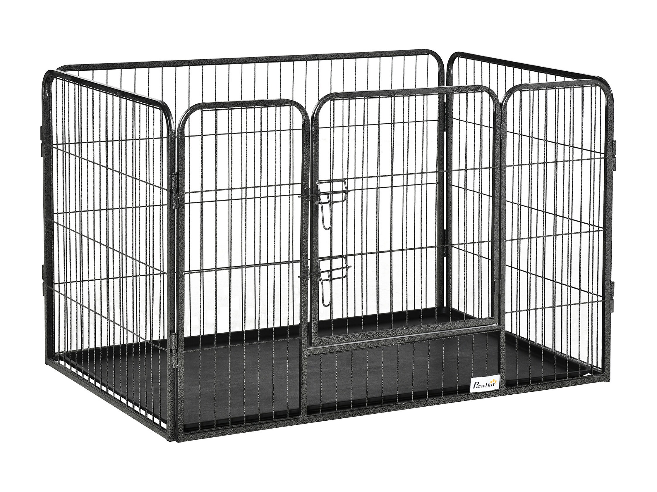 Parc enclos modulable pour chien 6 panneaux avec porte acier époxy noir