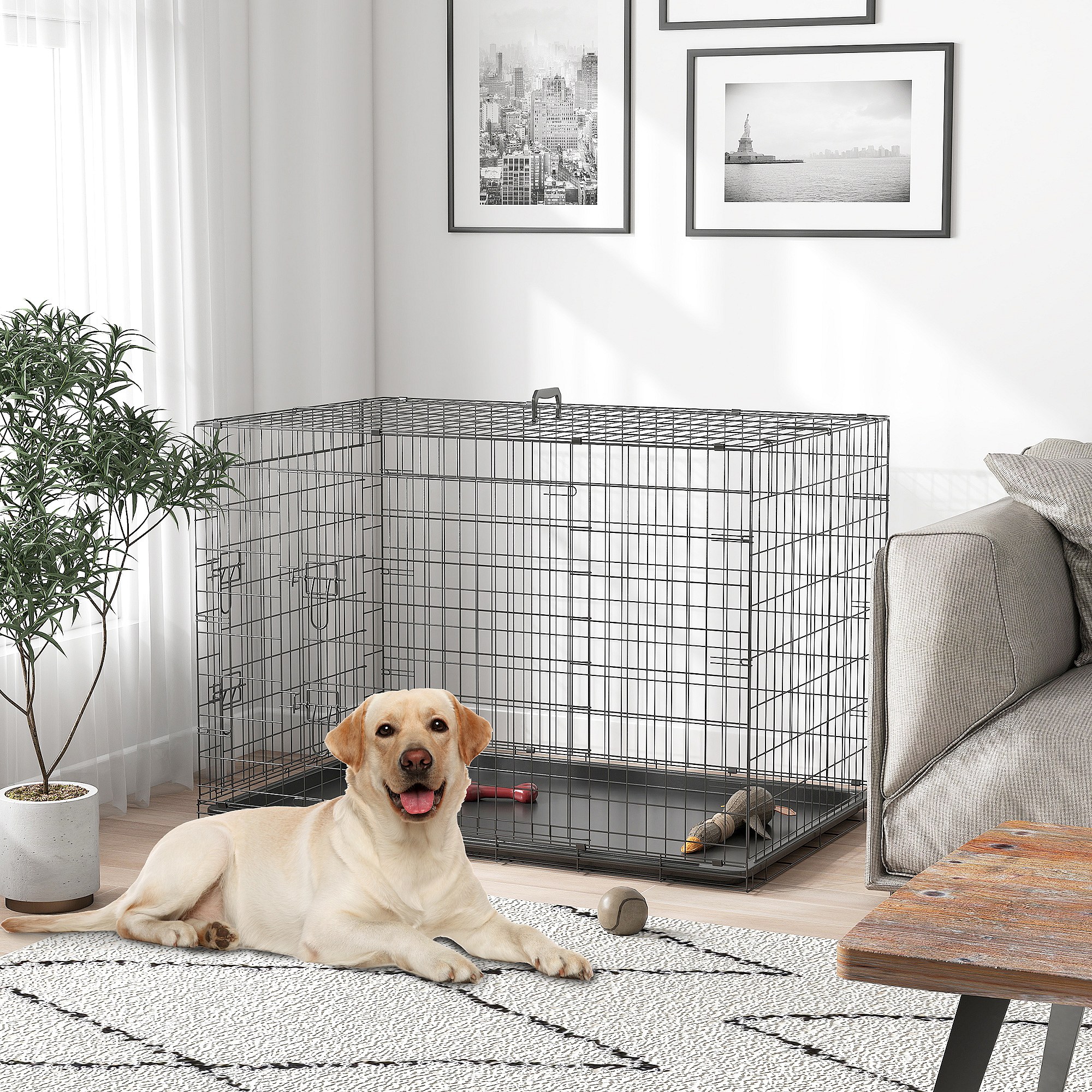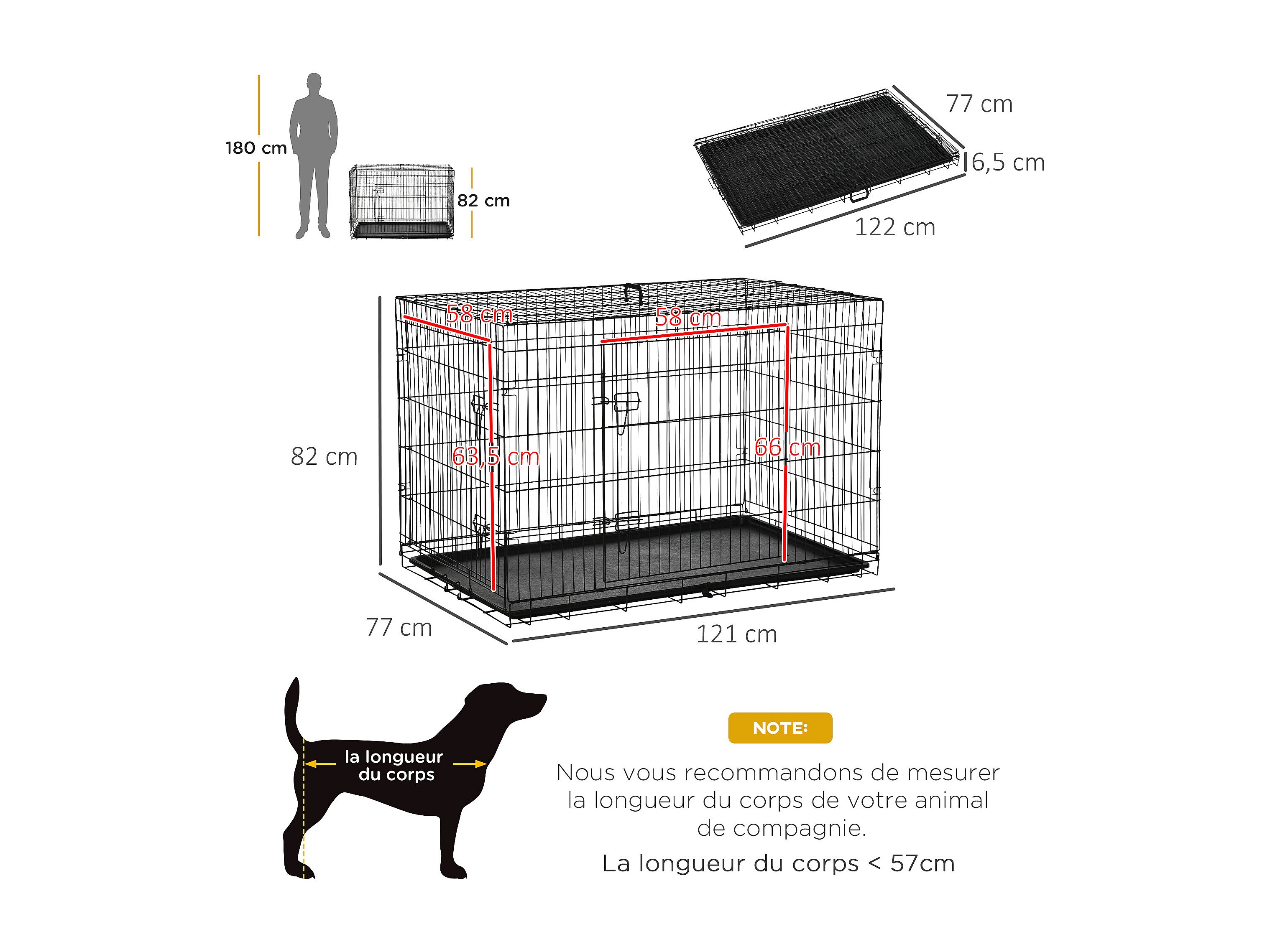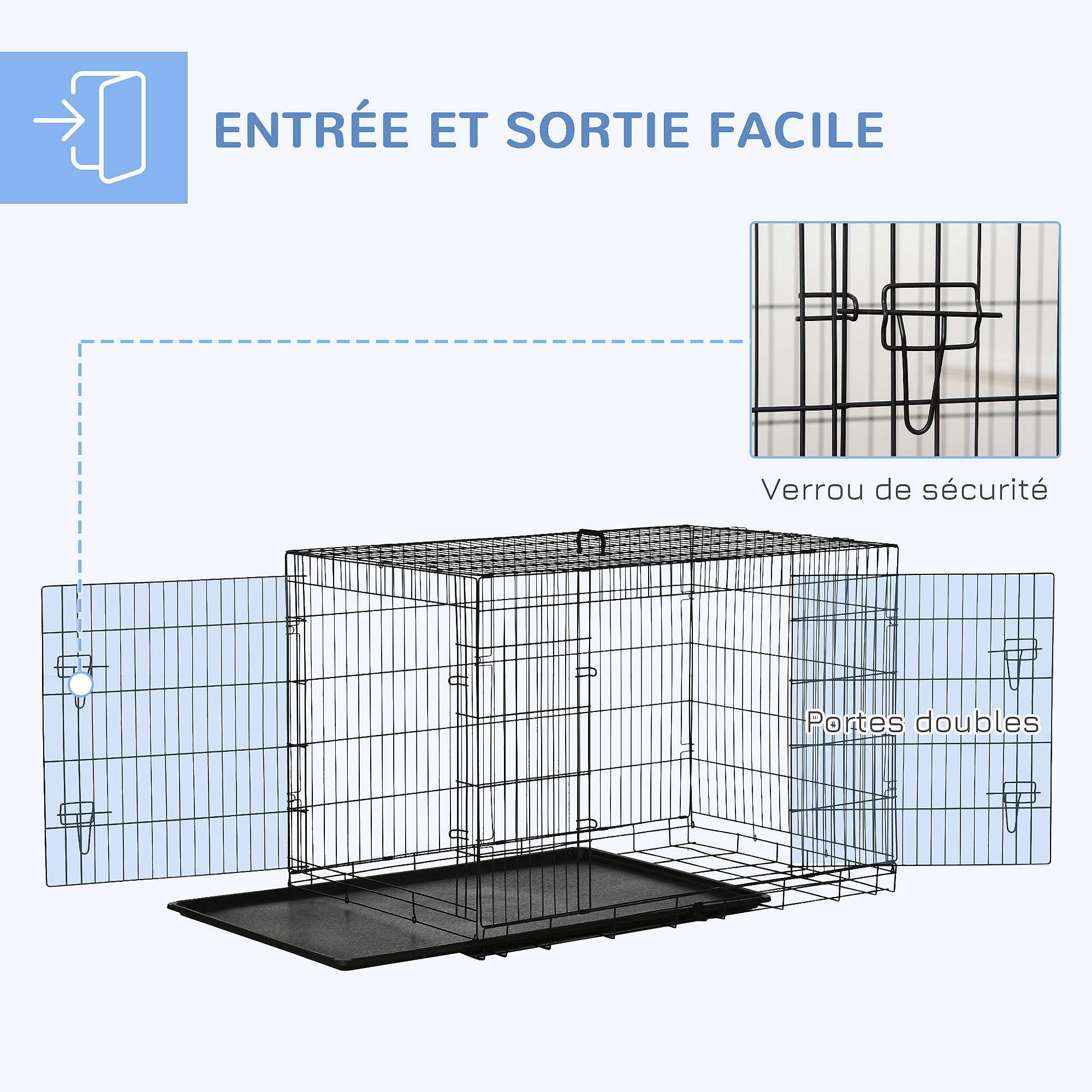 Cage de transport pour chien pliable - 2 portes verrouillables - plateau amovible - dim. 121L x 77l x 82H cm - acier ABS noir