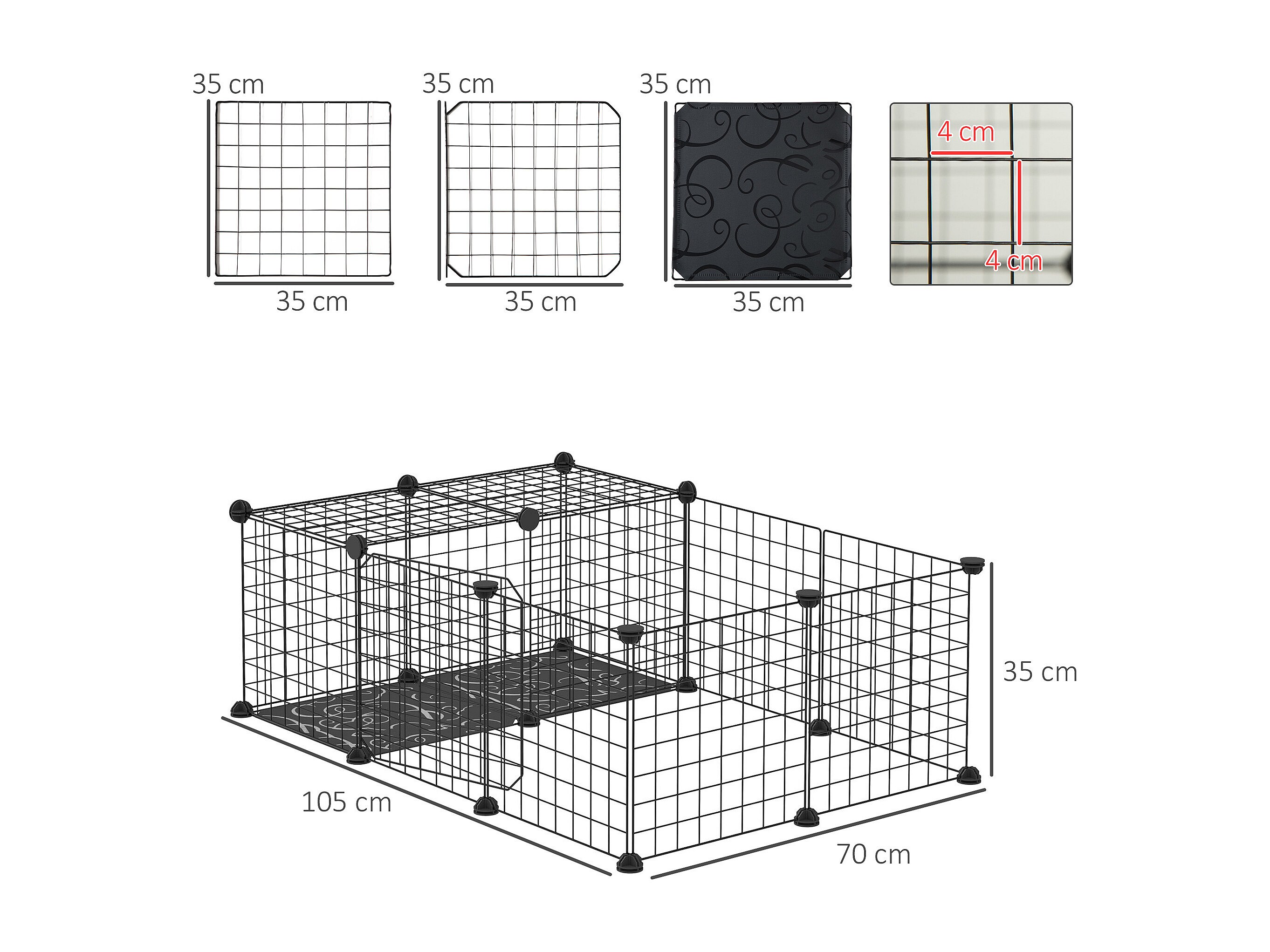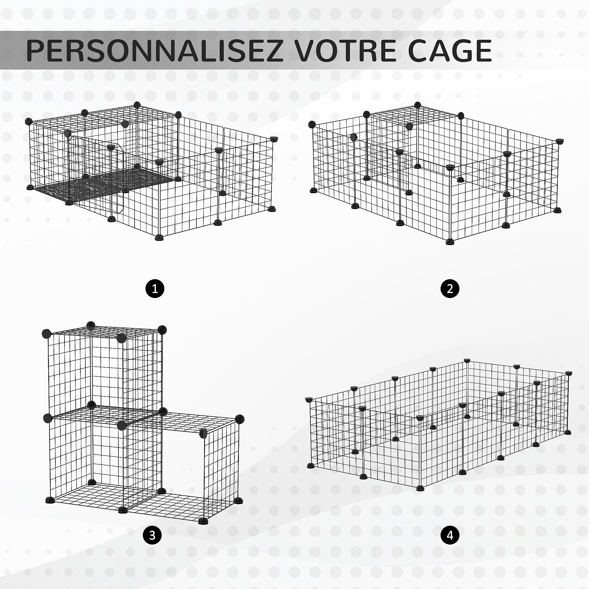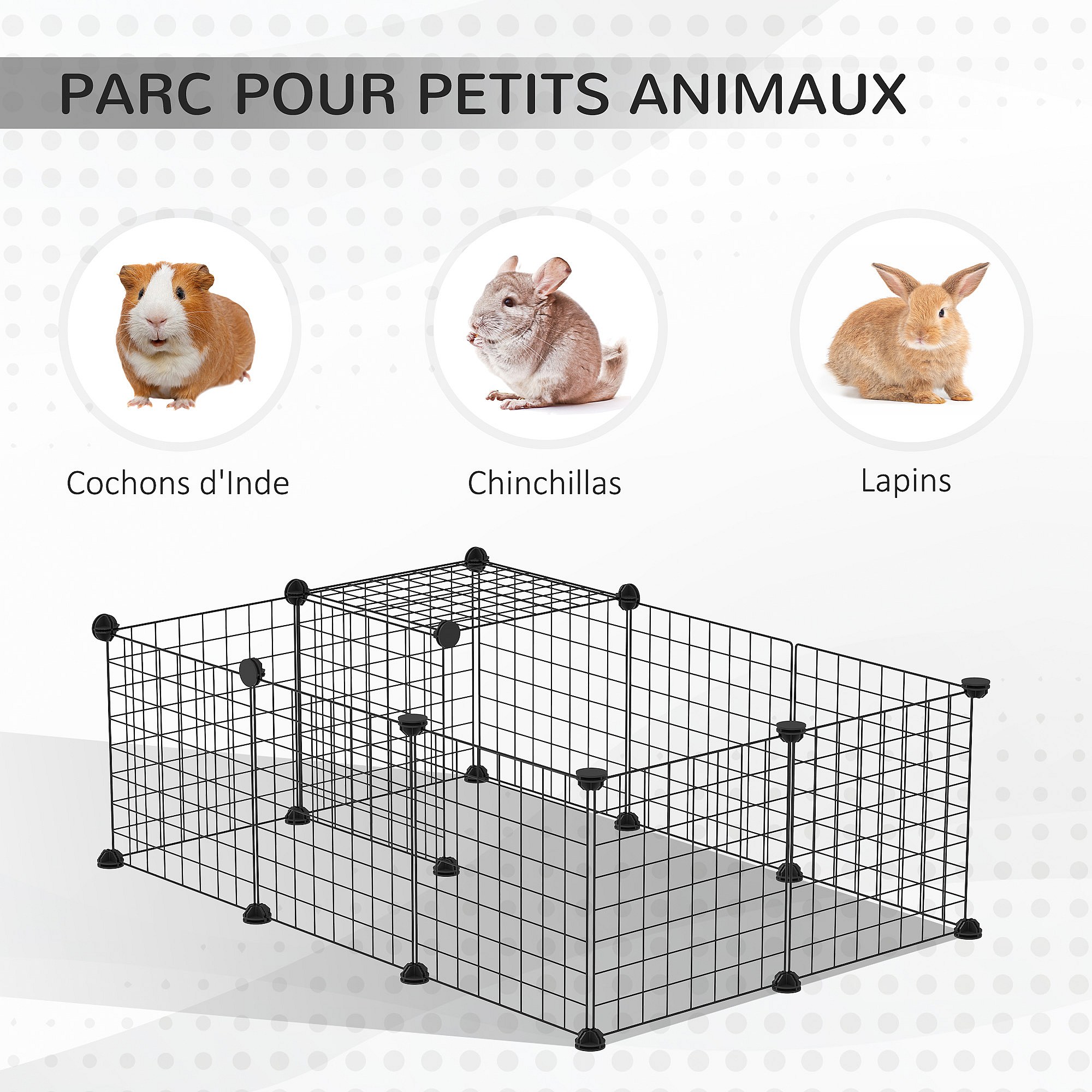 PawHut Cage parc enclos modulable petits animaux de compagnie - dim. standards 140L x 70l x 70H cm - 27 panneaux bords arrondis - résine PP fils d'acier noir