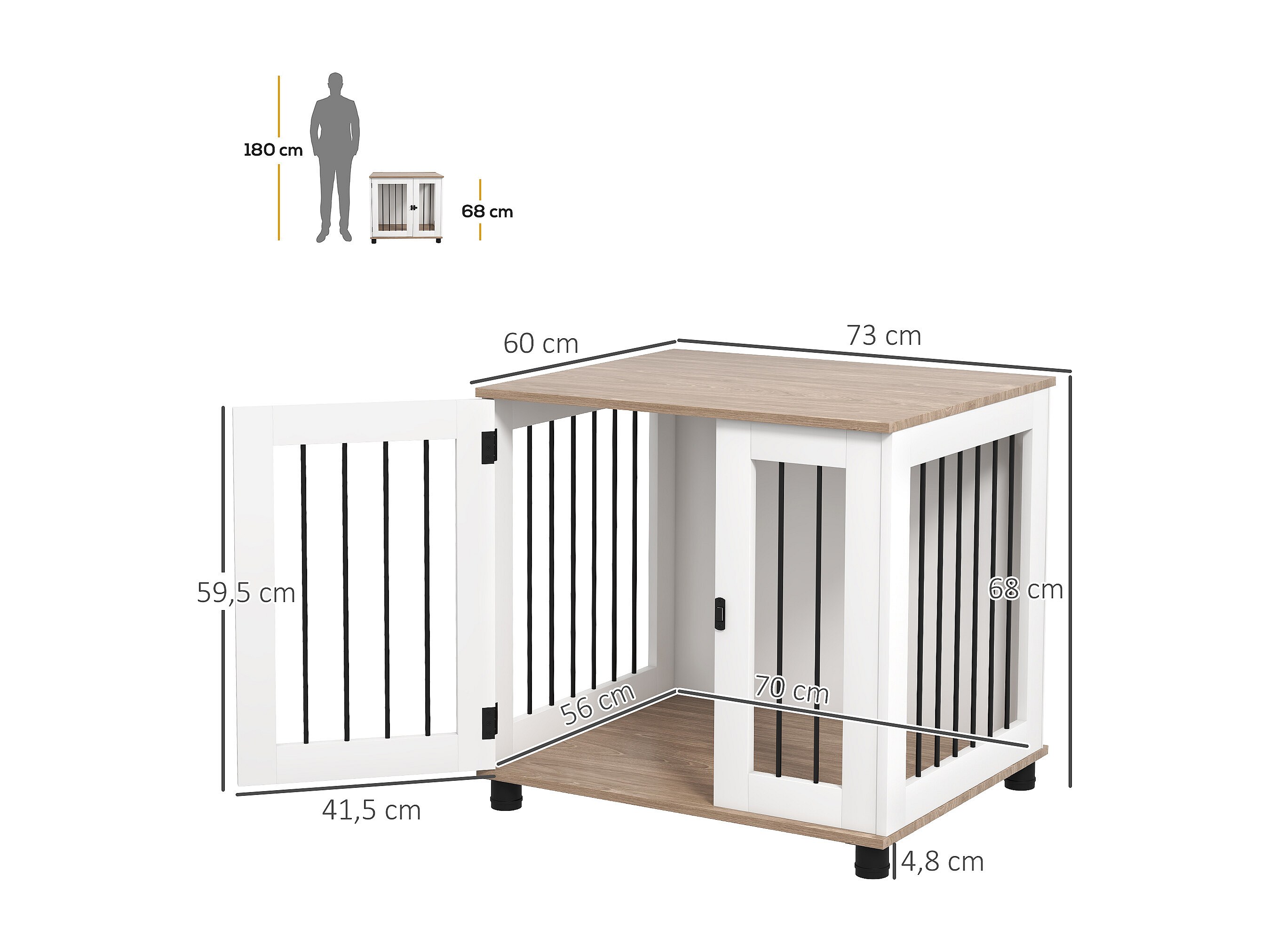 Cage pour chien animaux table d'appoint 2 en 1 - 2 portes verrouillables - dim. 76L x 54,5l x 56H cm - MDF acier blanc