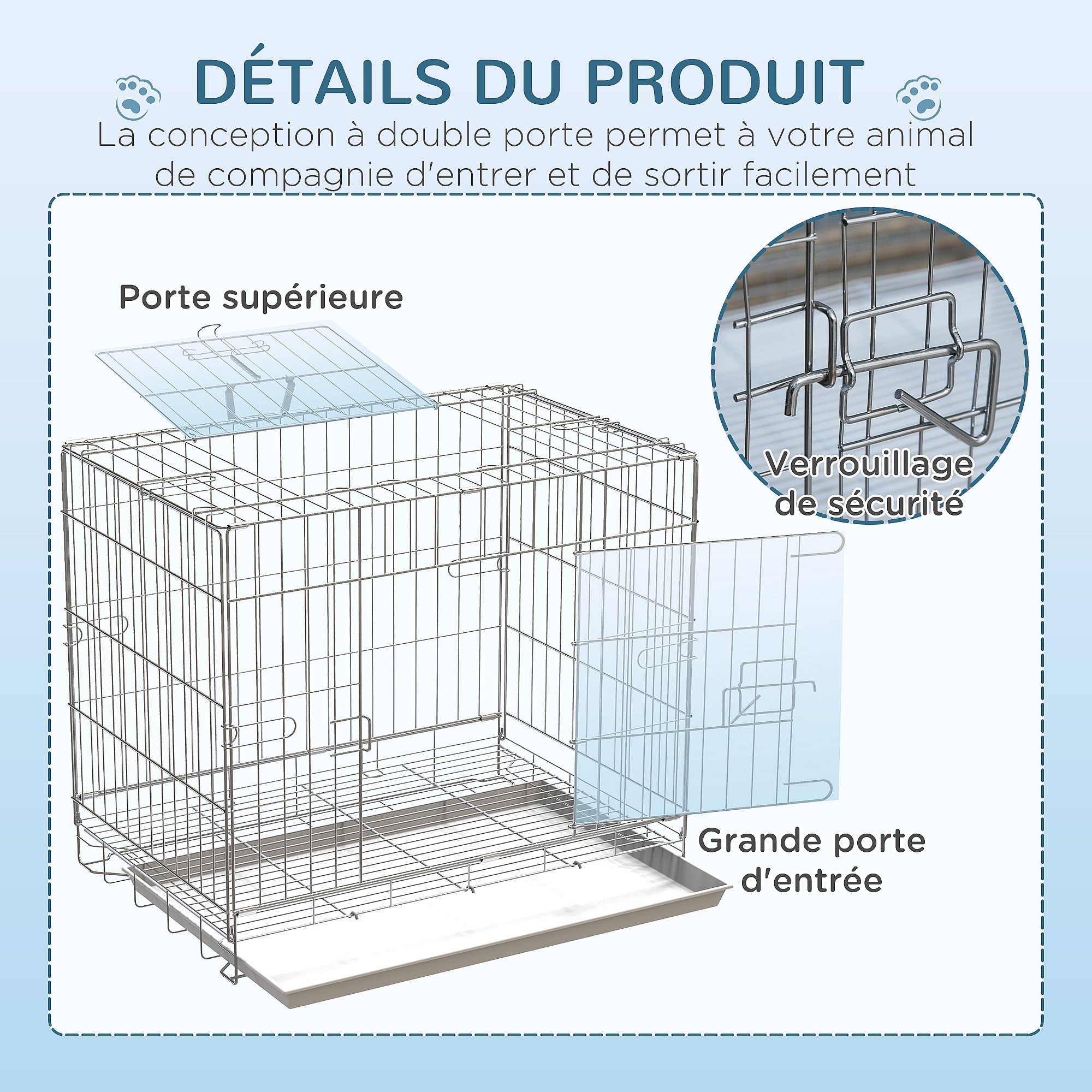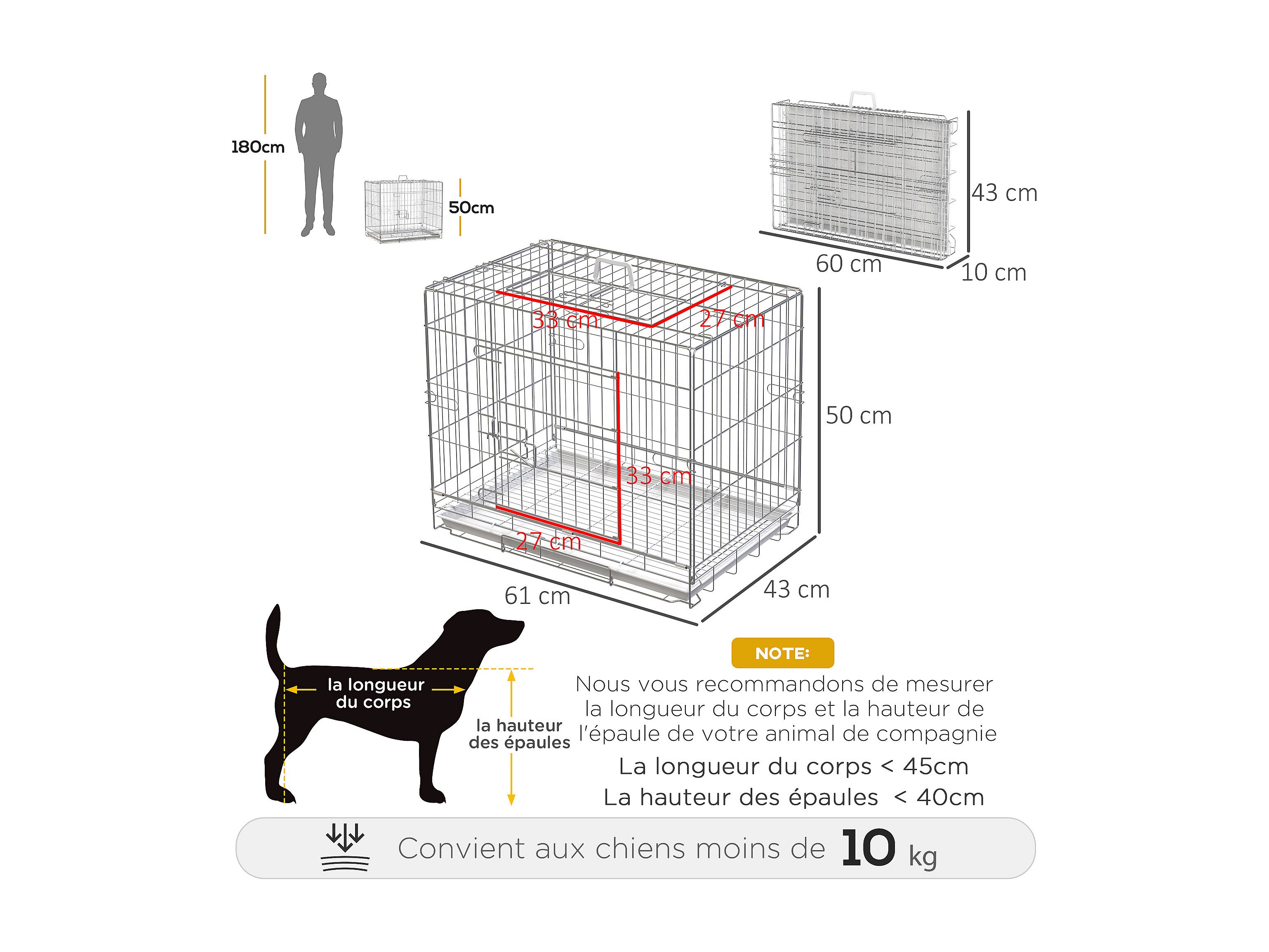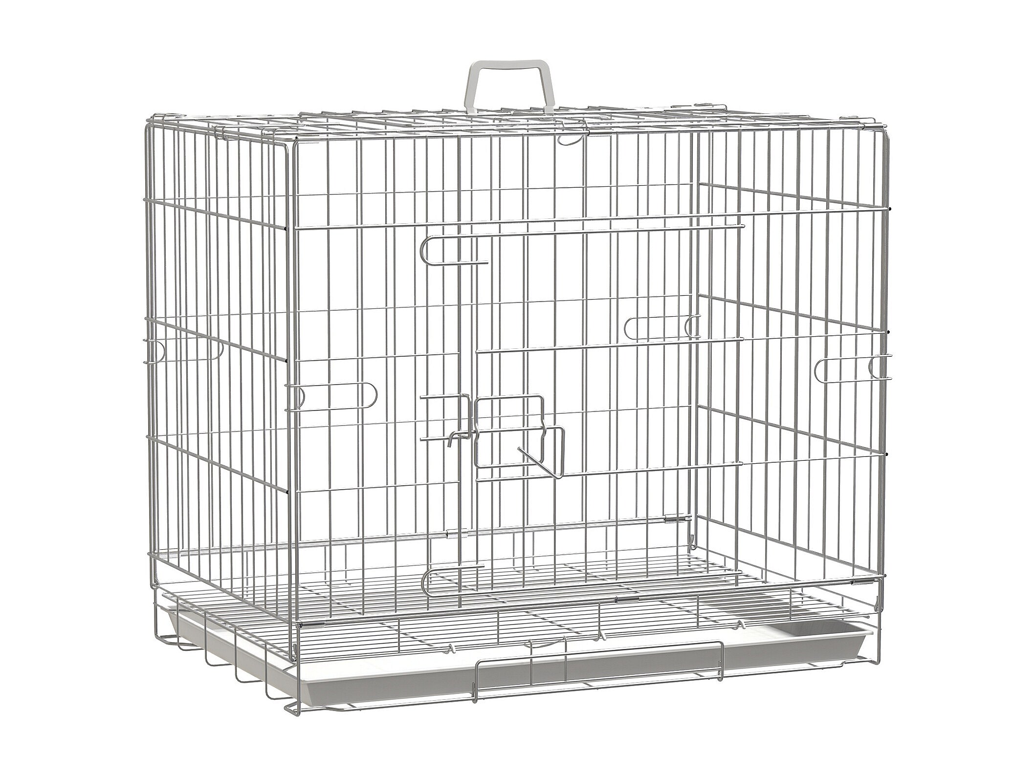 Cage pour chien pliable - plateau excrément coulissant - 2 portes verrouillable, poignée - dim. 61L x 43l x 50H cm - fer galvanisé PP blanc