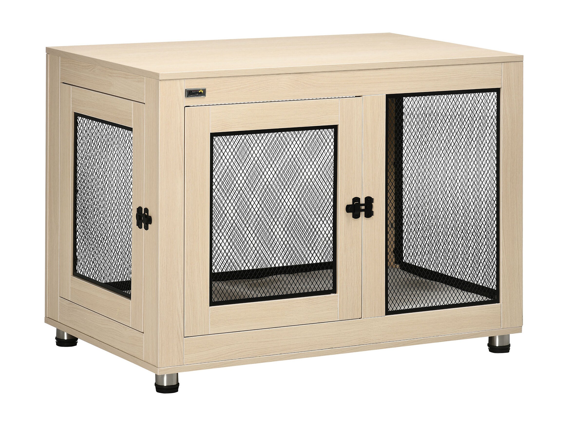 Cage pour chien animaux table d'appoint 2 en 1 - 2 portes verrouillables - dim. 76L x 54,5l x 56H cm - MDF acier blanc