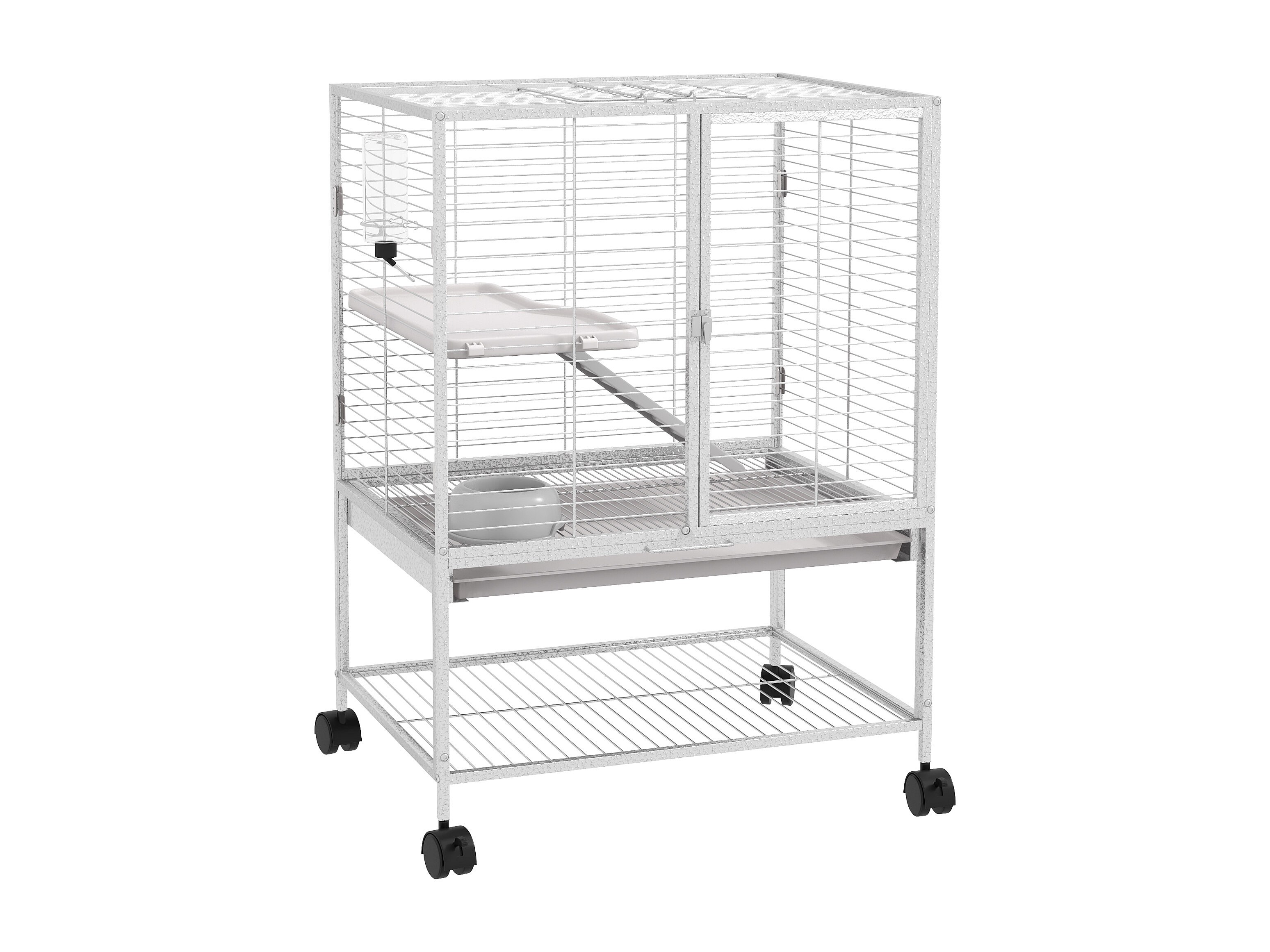 Cage pour rongeurs furet chinchilla plateforme rampe 2 portes biberon gamelle plateau étagère acier gris clair