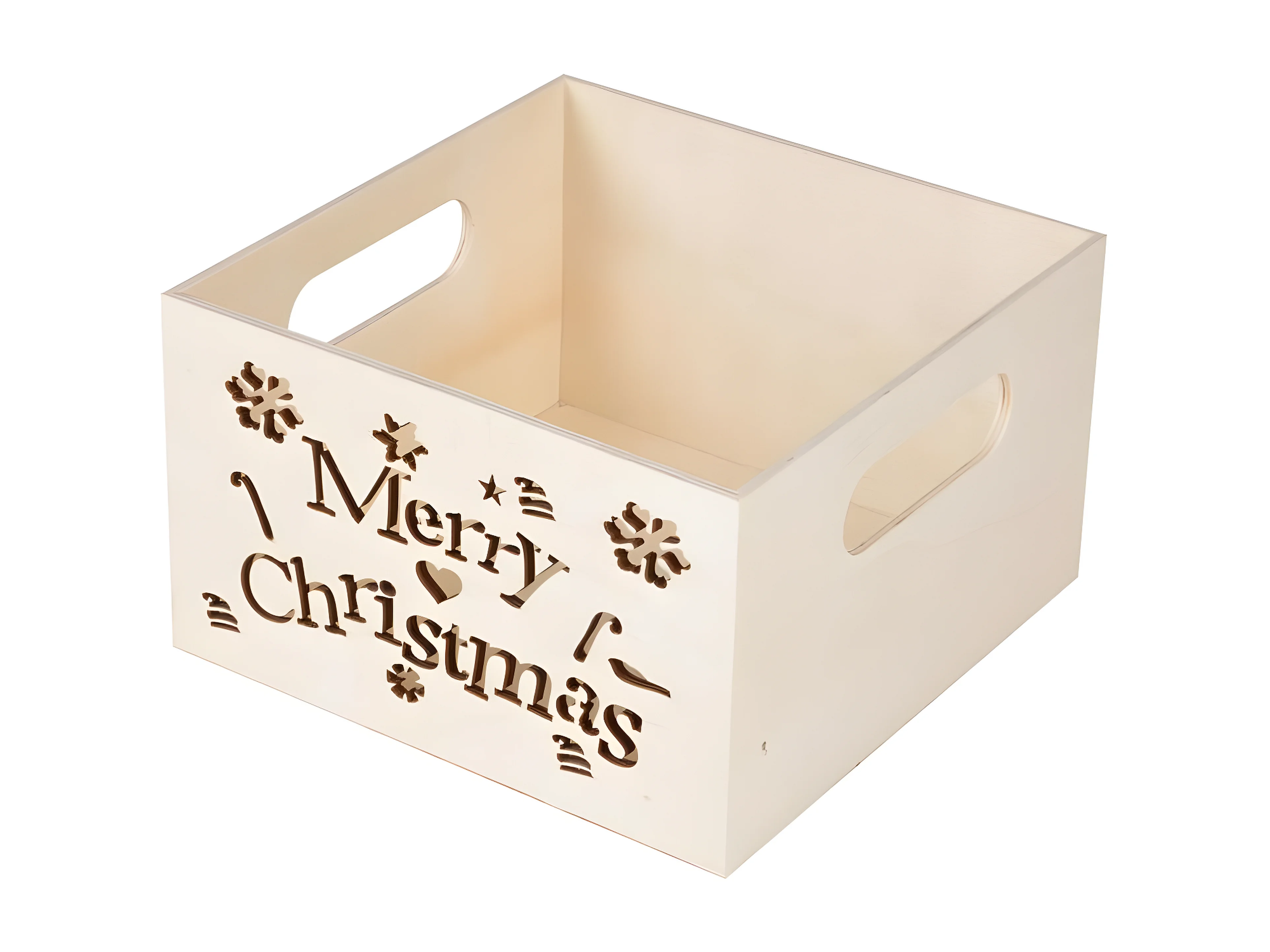 Caisse à Customiser "Merry Christmas" 15cm Naturel