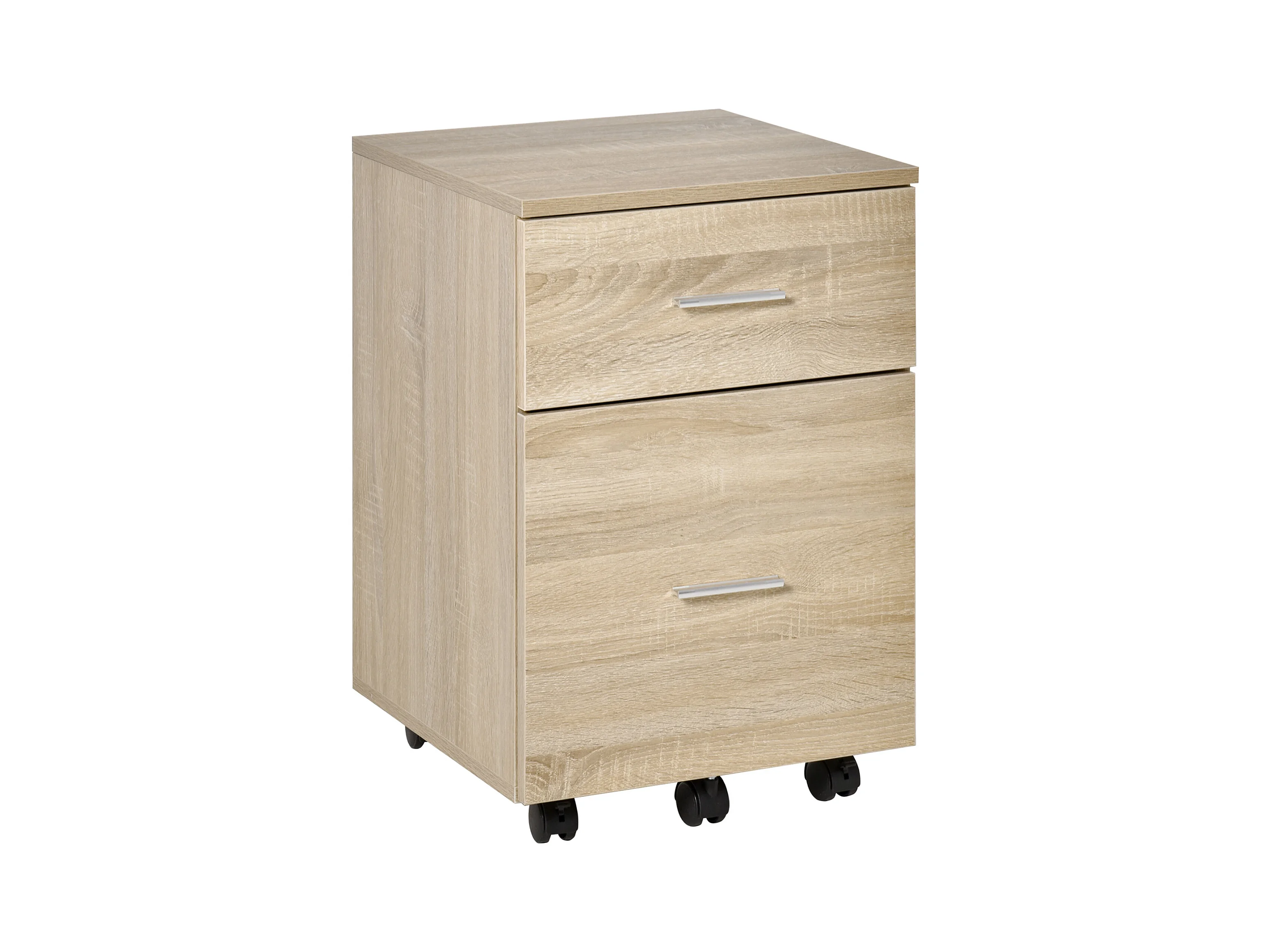 Caisson de bureau rangement bureau sur roulettes 2 tiroirs panneaux particules aspect bois chêne clair