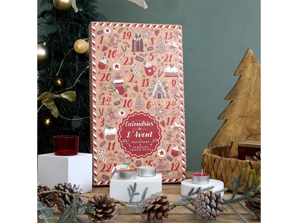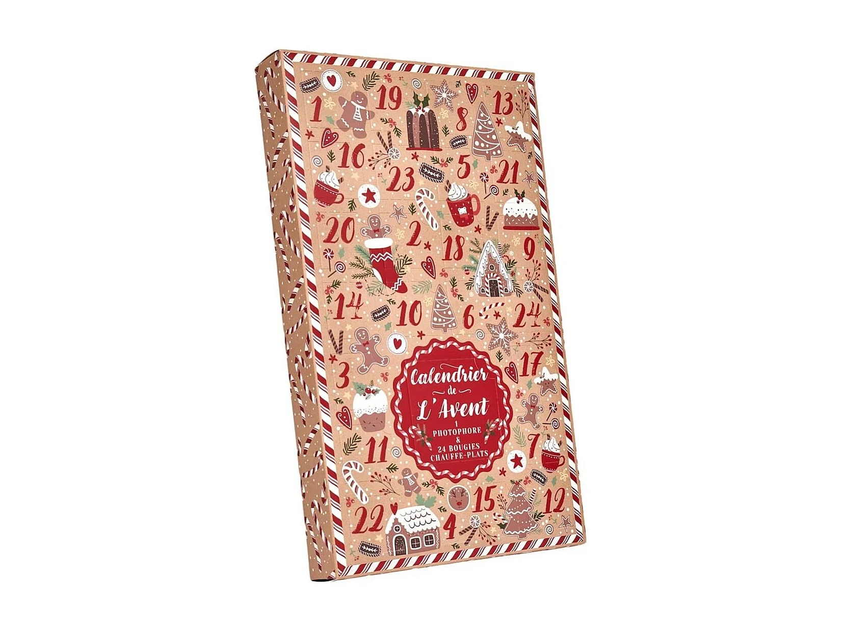Calendrier de l'Avent Bougies Parfumées (3 parfums) avec Photophore en Verre Rouge