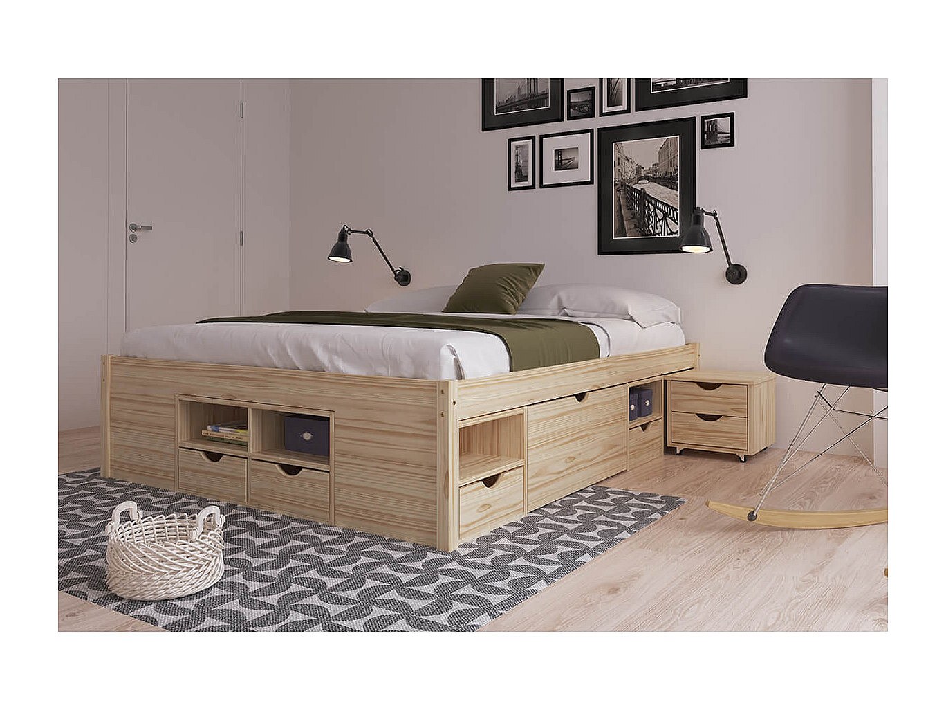 CALI - Lit 180x200cm multi-rangement Bois Massif