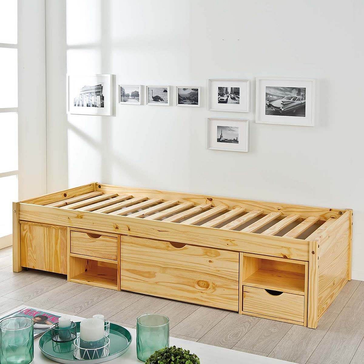 CALI - Lit 90x200cm multi-rangement Bois Massif