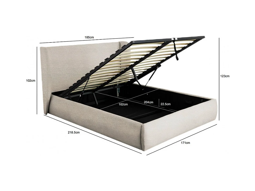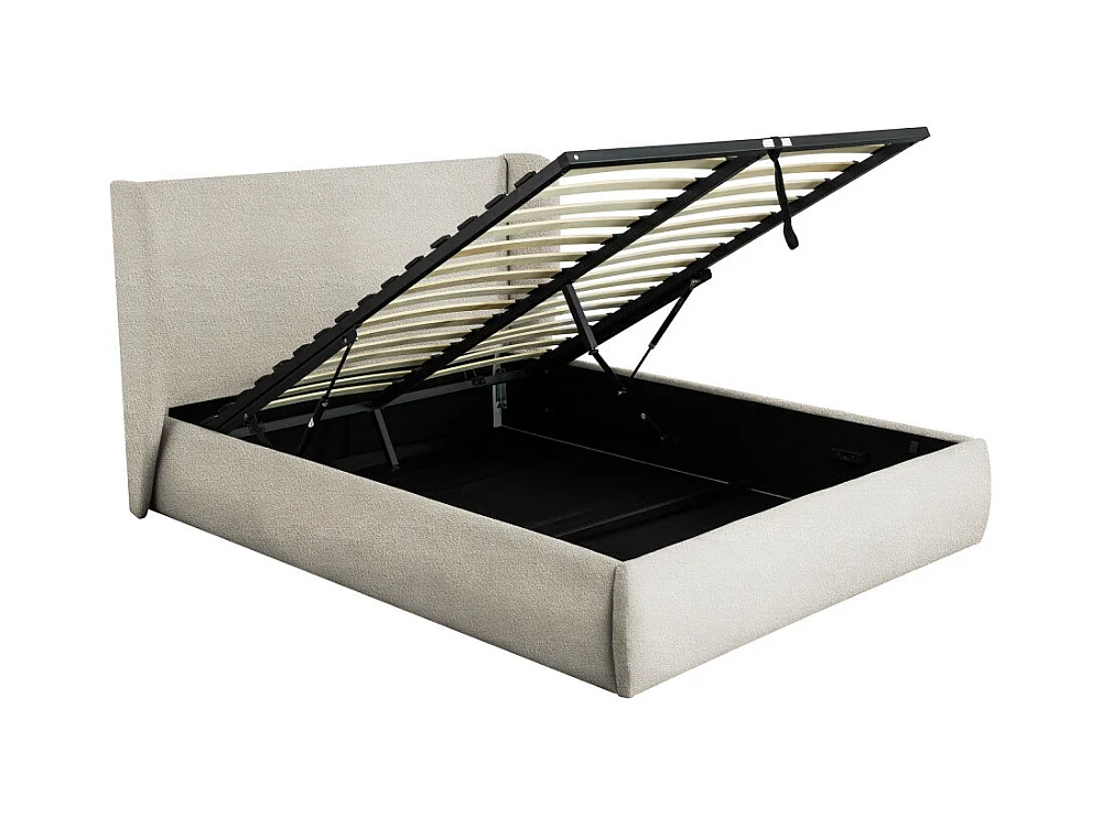 Cali - Lit coffre en tissu bouclette 160x200cm - Écru