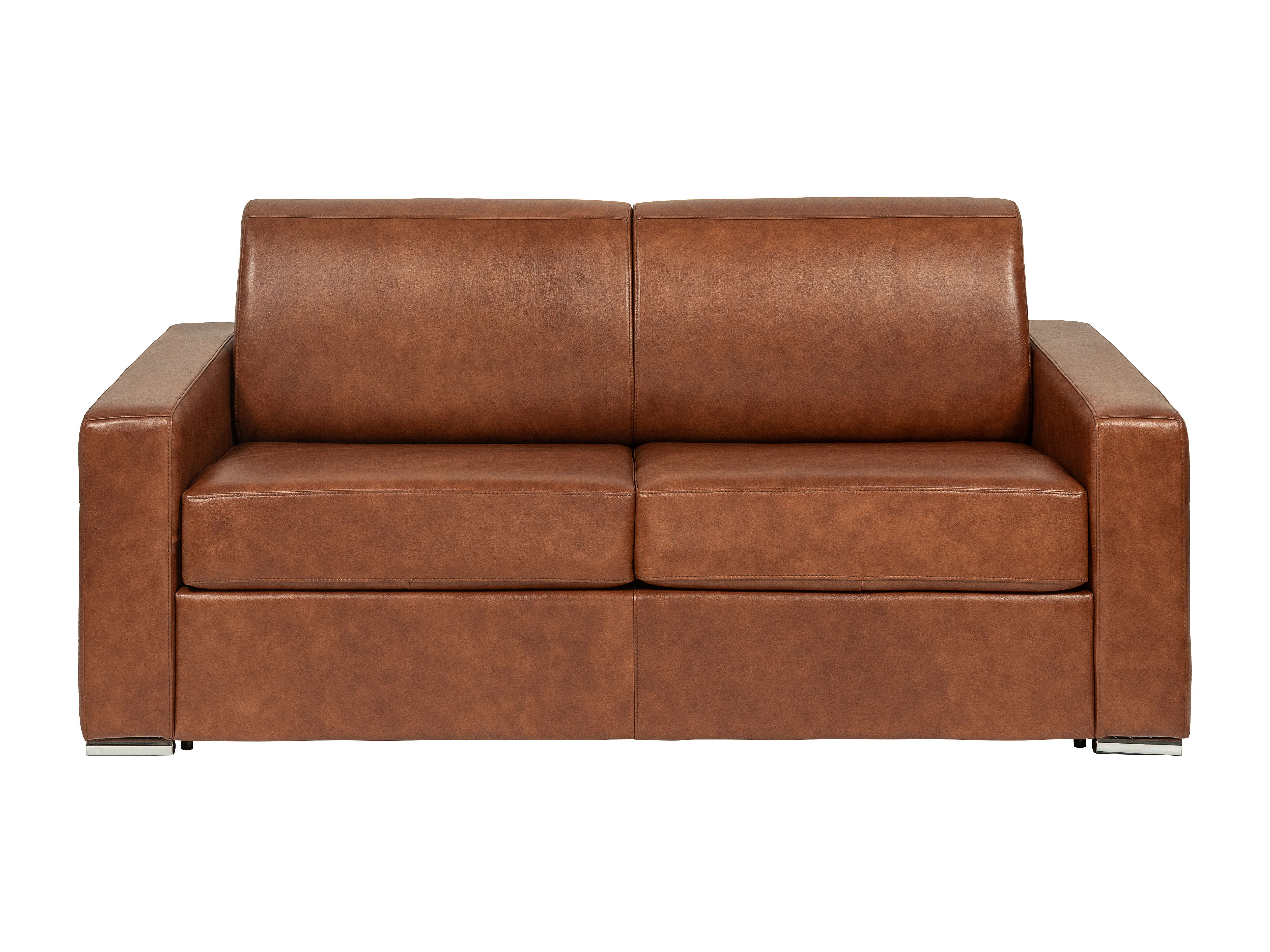 Canapé 3 places convertible express en cuir de buffle vintage caramel - Couchage 140 cm - Matelas 18 cm CALITO