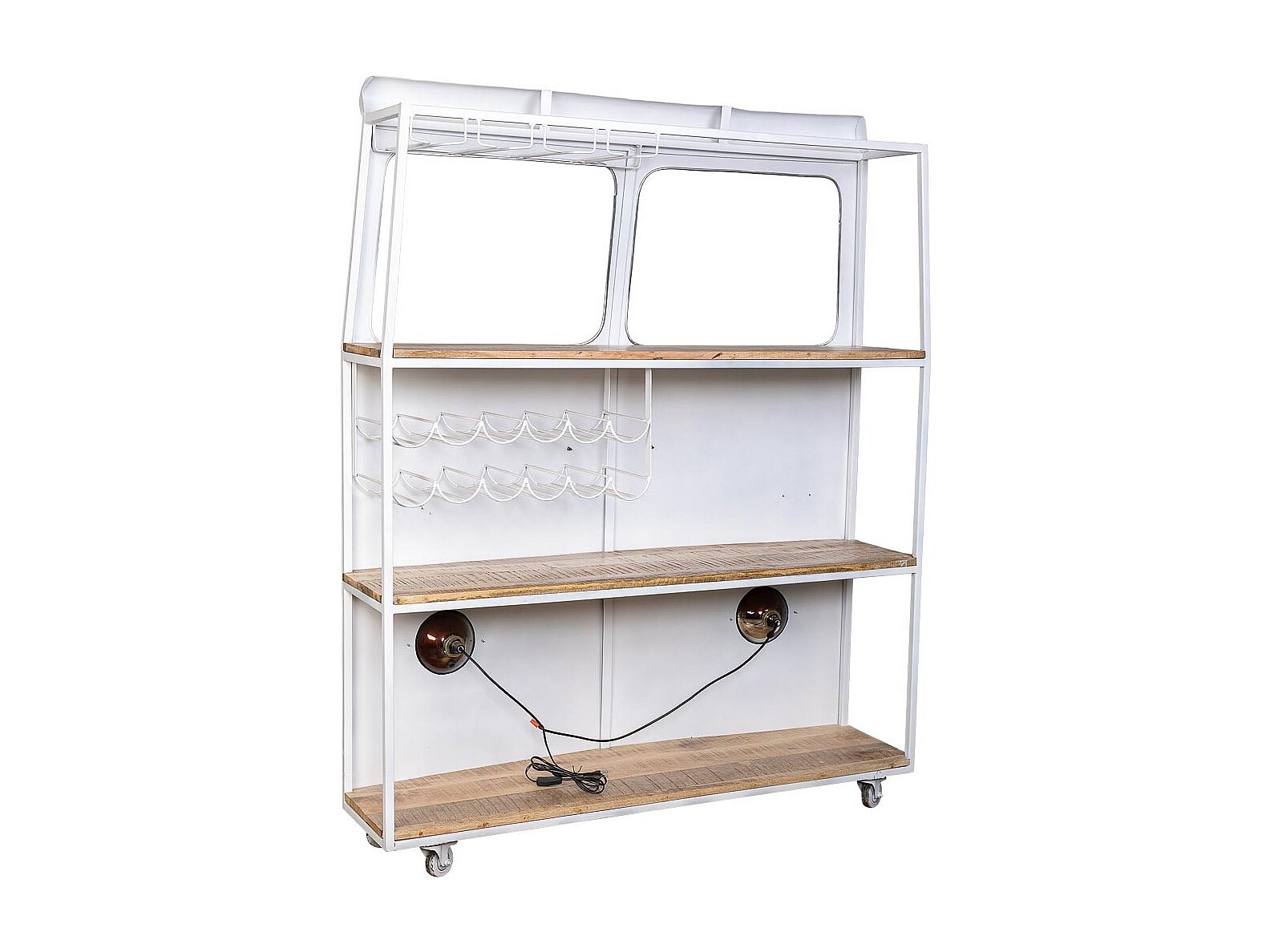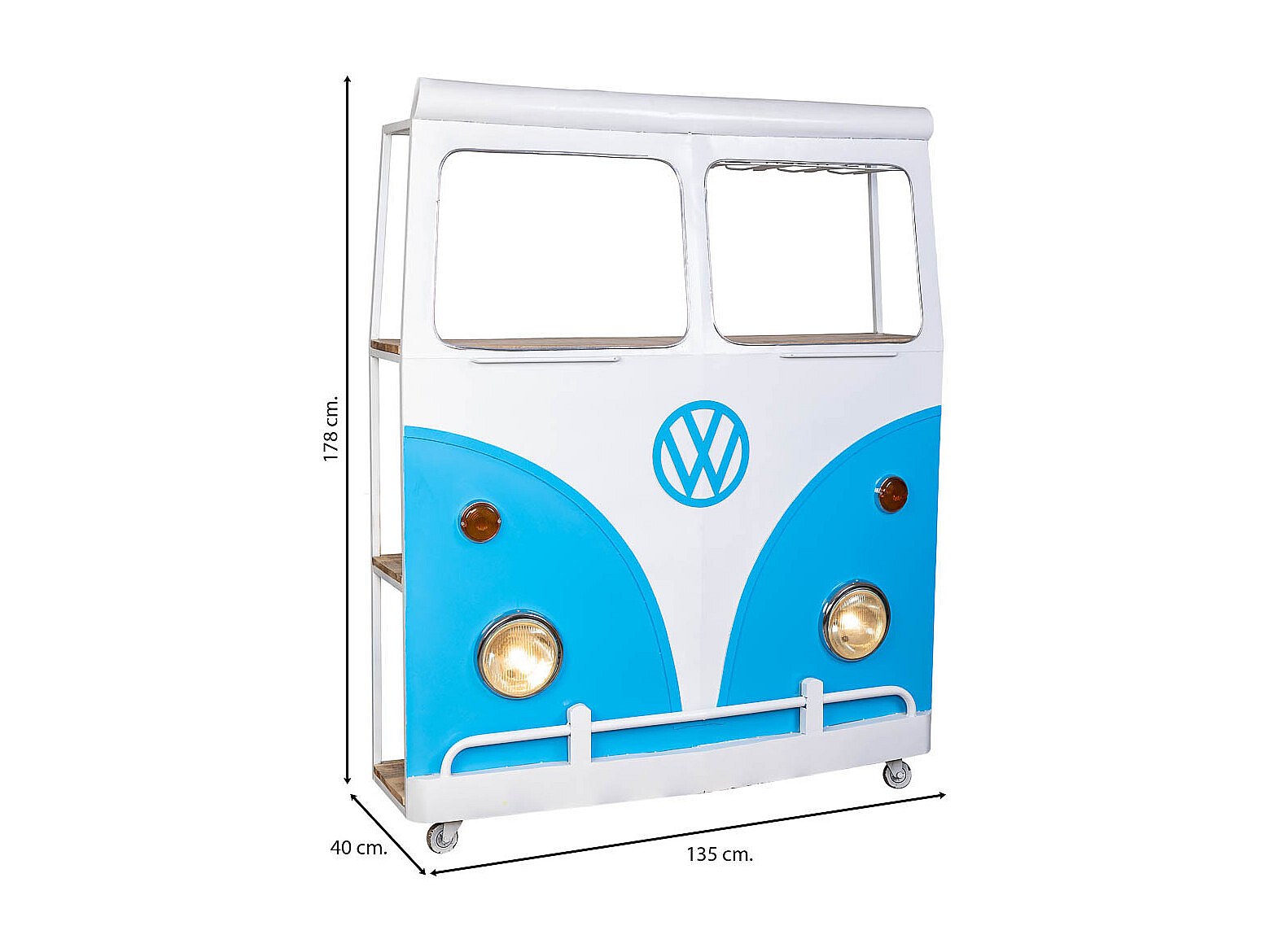 Camionnette casier à bouteilles en métal et bois bleu 135x40x178h
