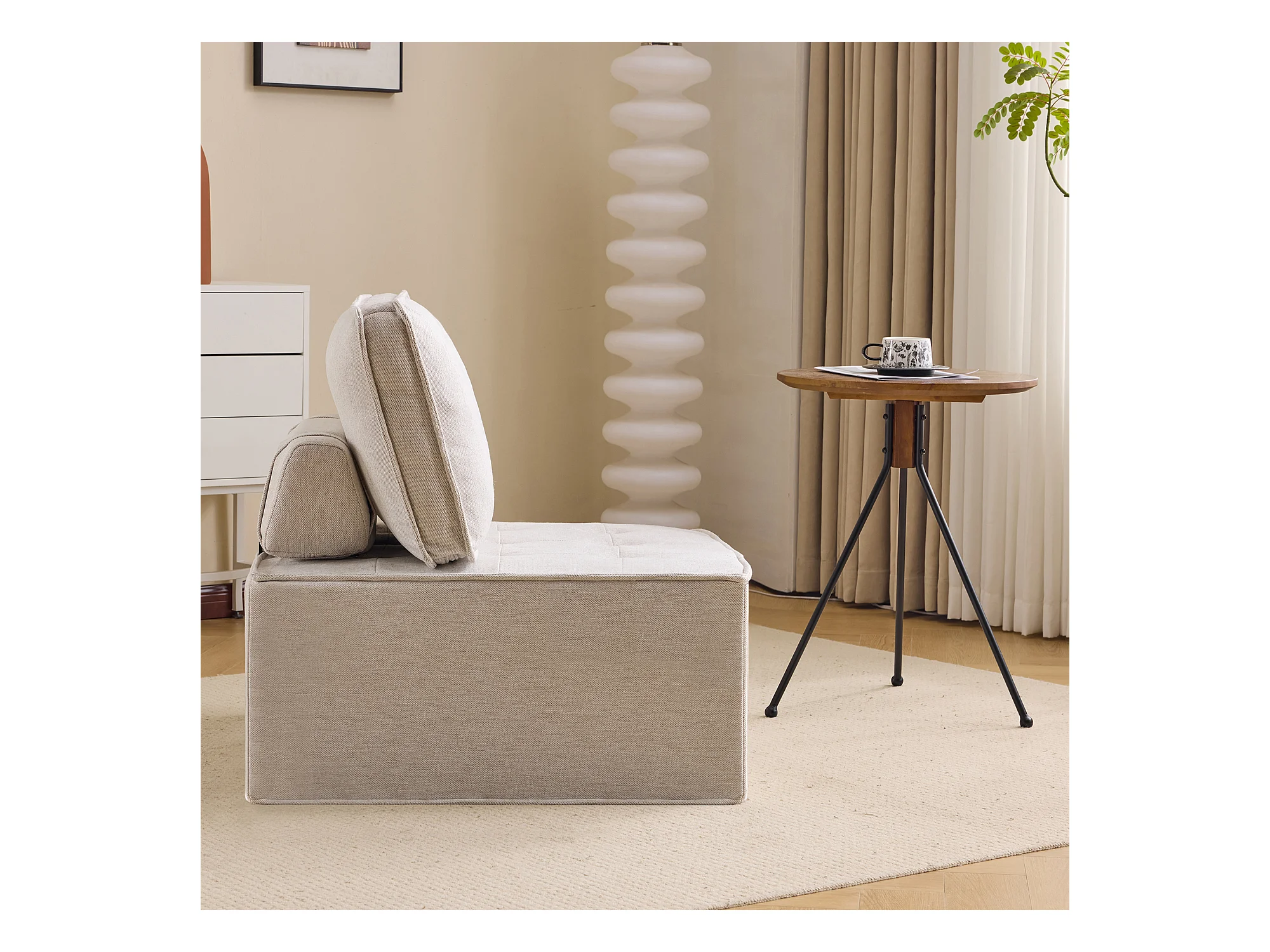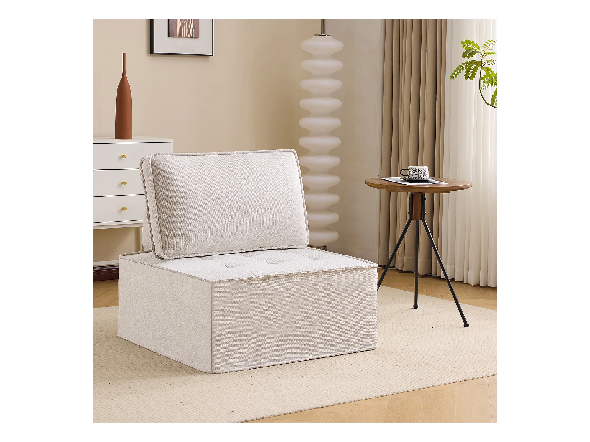 Canapé 1 place en lin beige - Dossier rembourré - Style moderne - Pour chambre ou salon