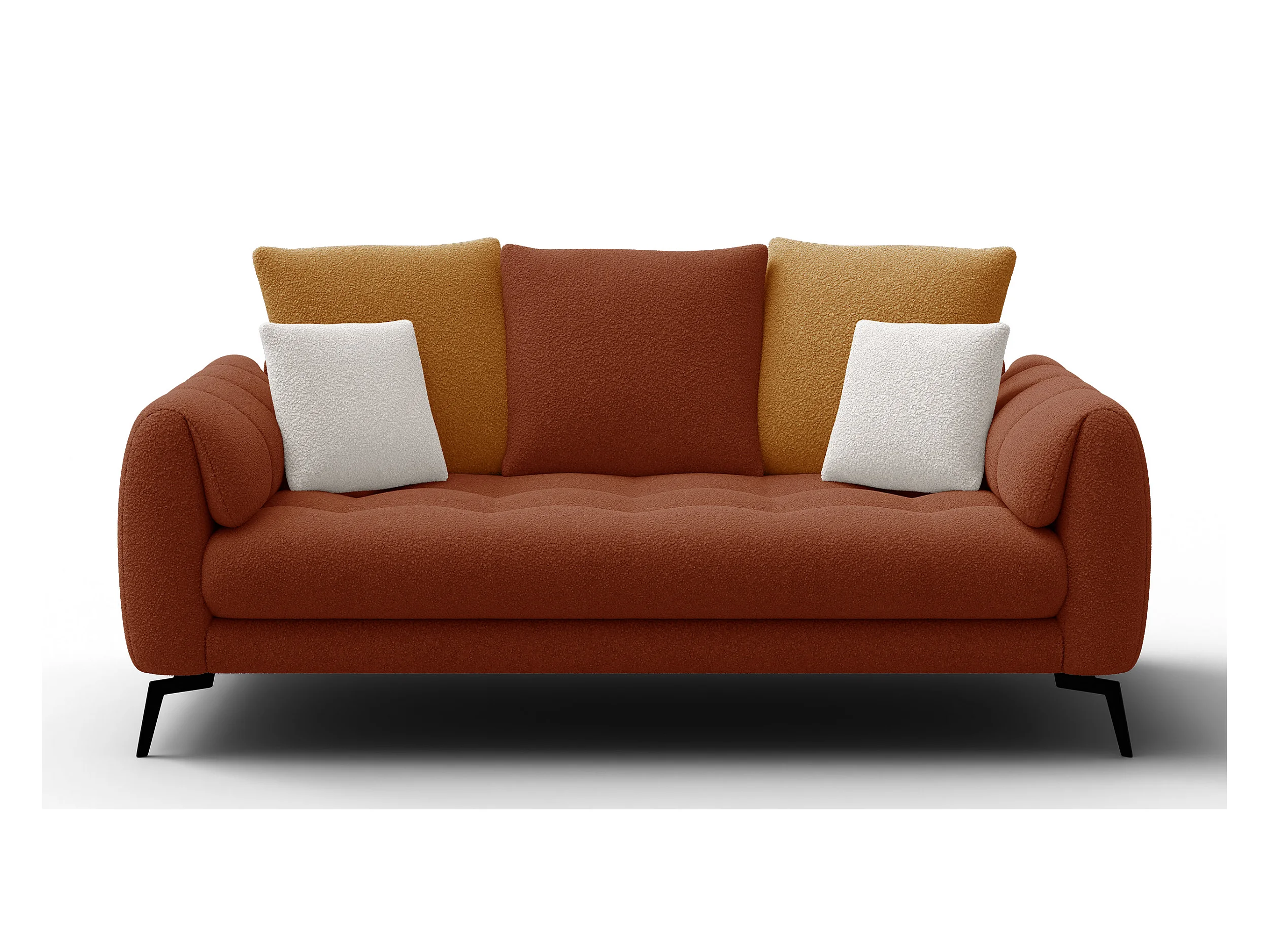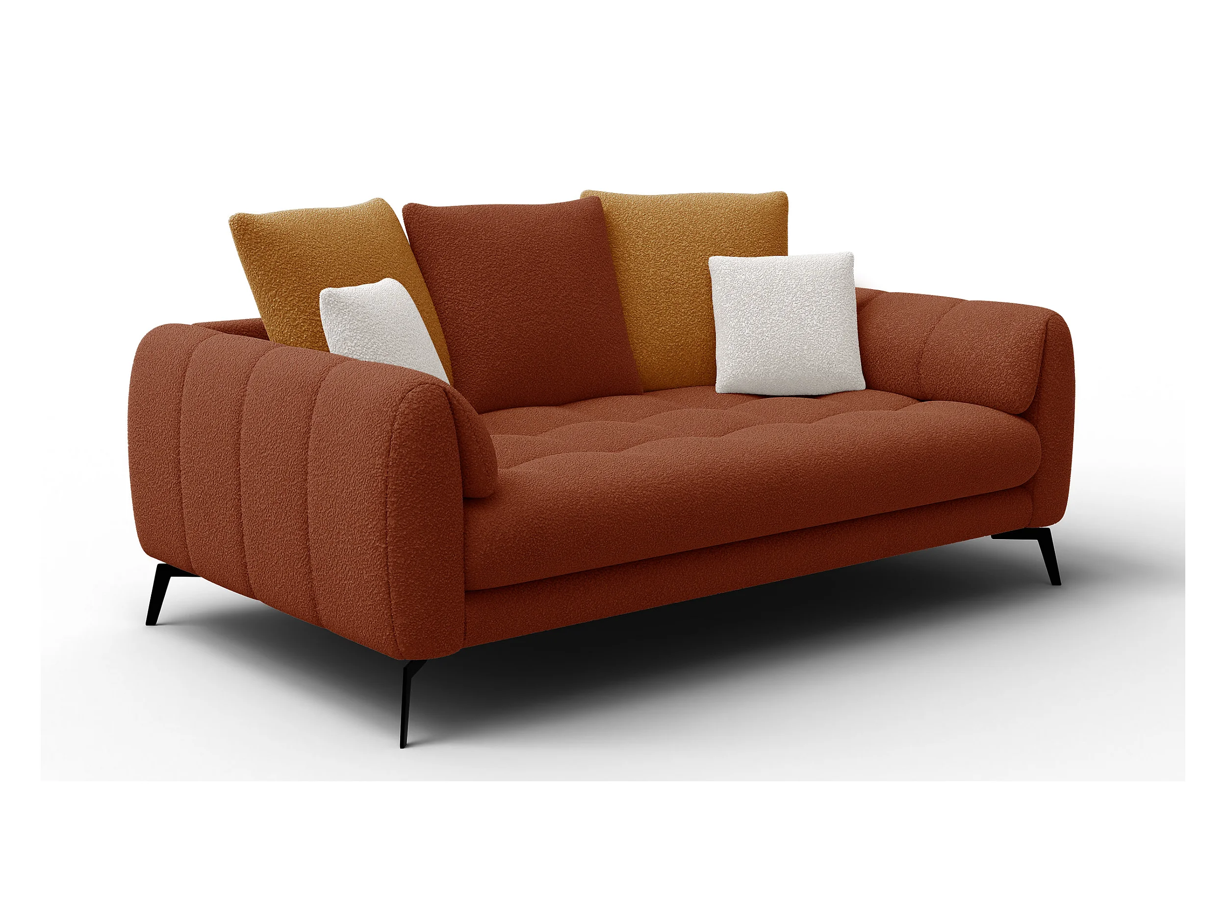 Canapé 2,5 places CALME, tissu orange foncé et écru