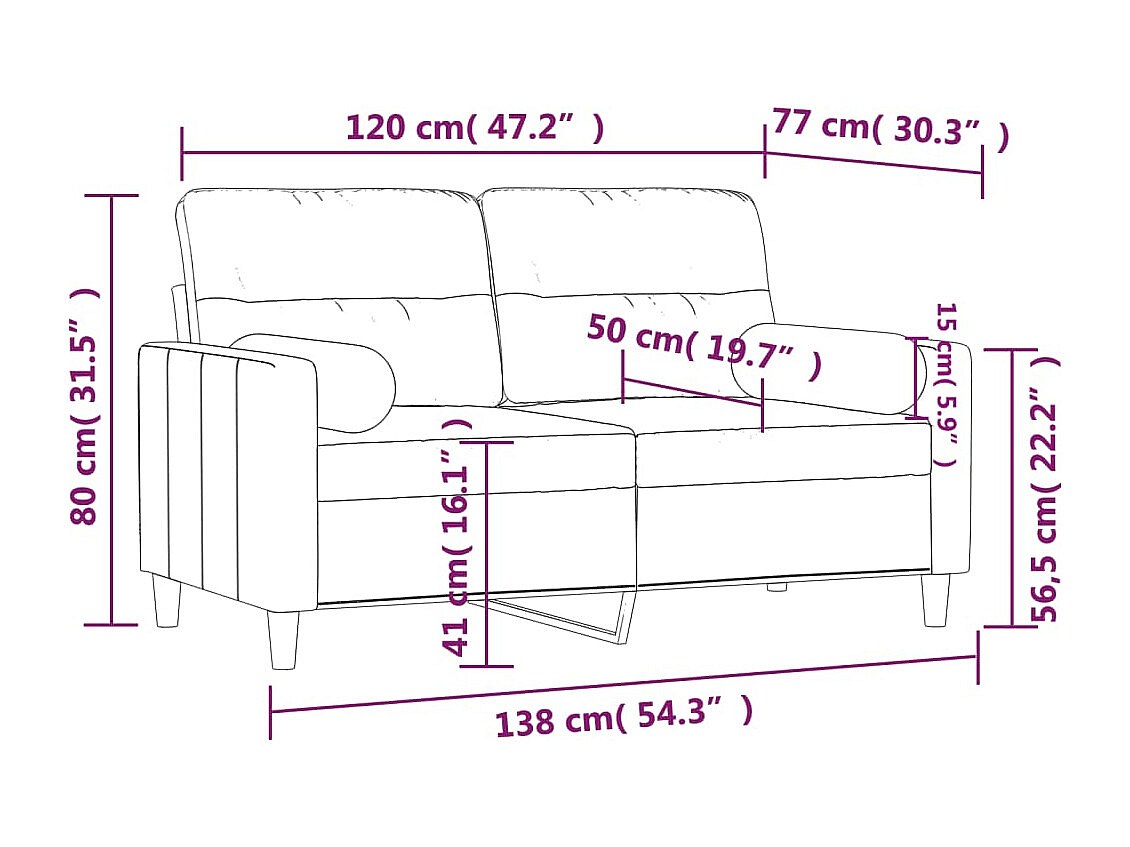Canapé 2 places avec oreillers gris foncé 120 cm tissu