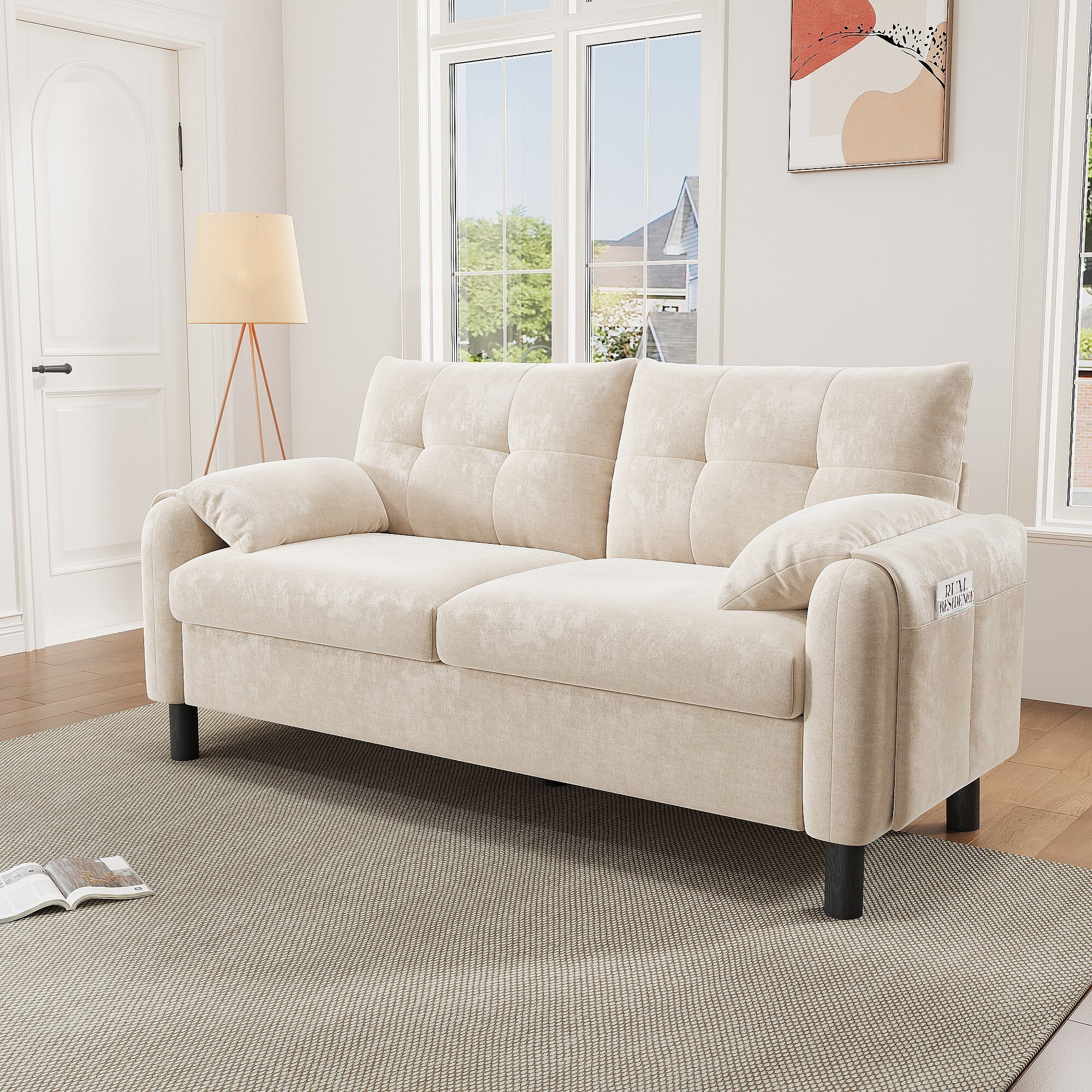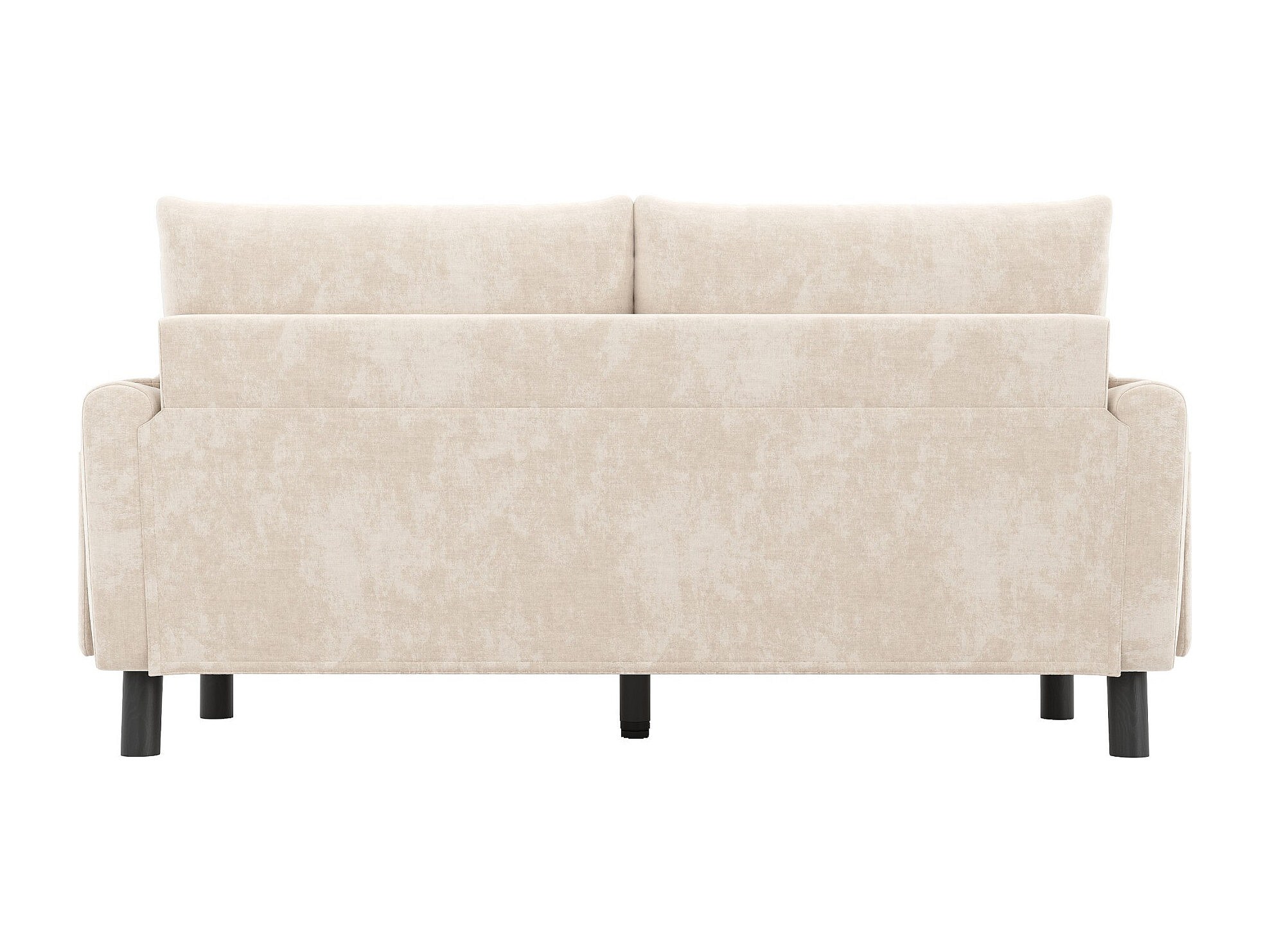Canapé 2 places avec poches latérales et accoudoirs, dossier rembourré - chenille beige