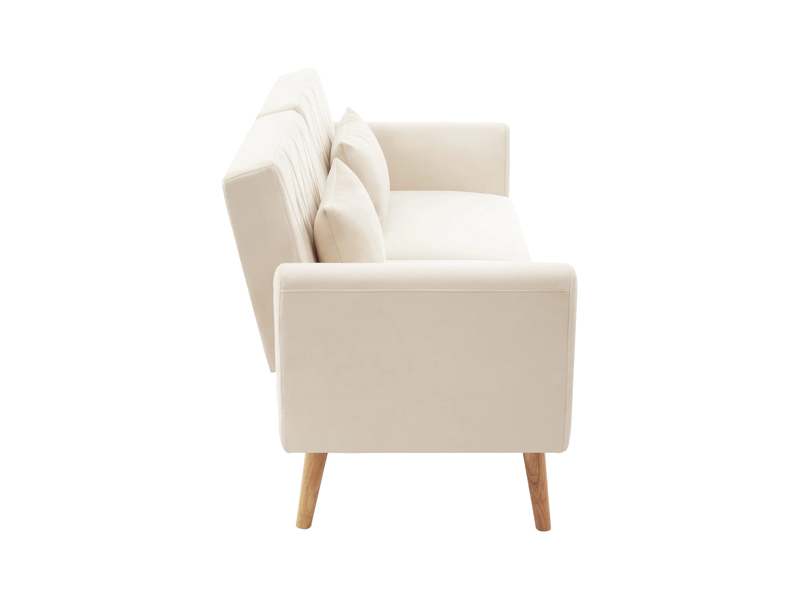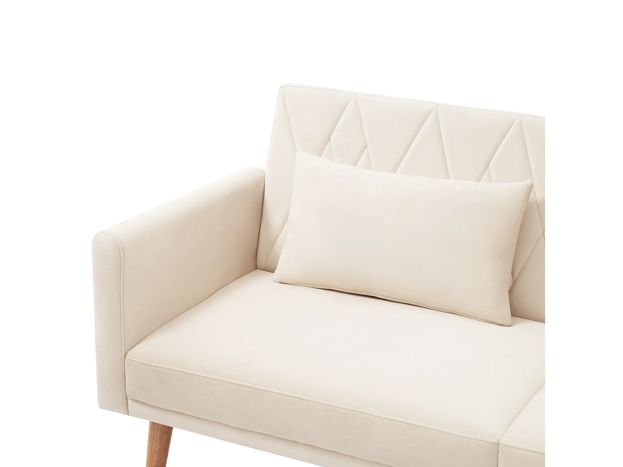 Canape 2 places beige - Canapé avec pieds et accoudoirs en bois - convient au salon et à la chambre
