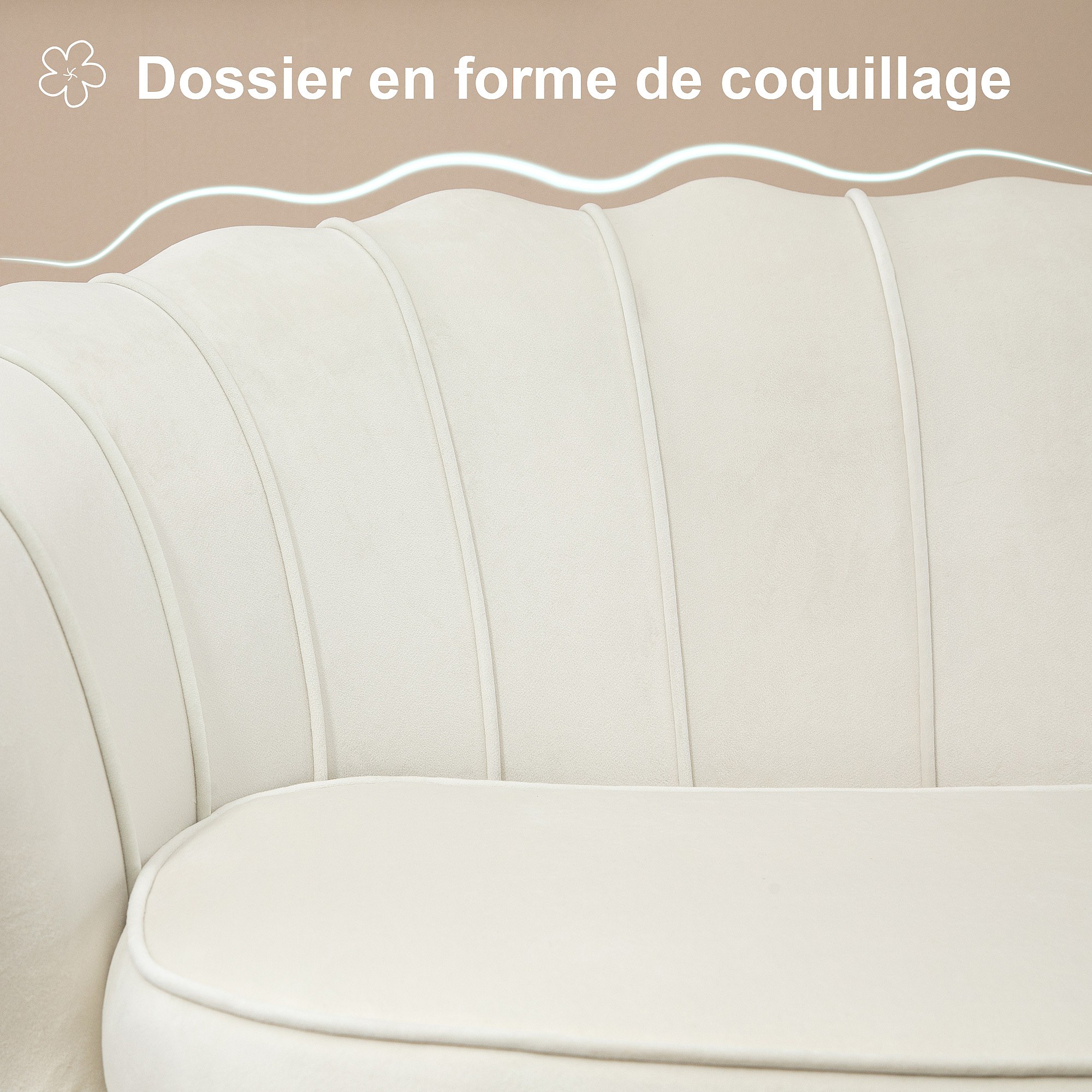Canapé 2 places coquillage canapé design dim. 130L x 77l x 77H cm pieds dorés effilés velours crème