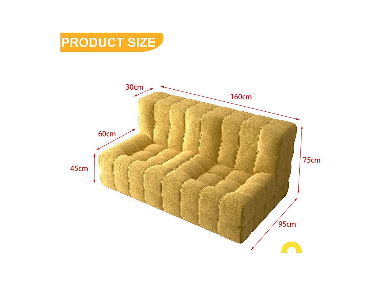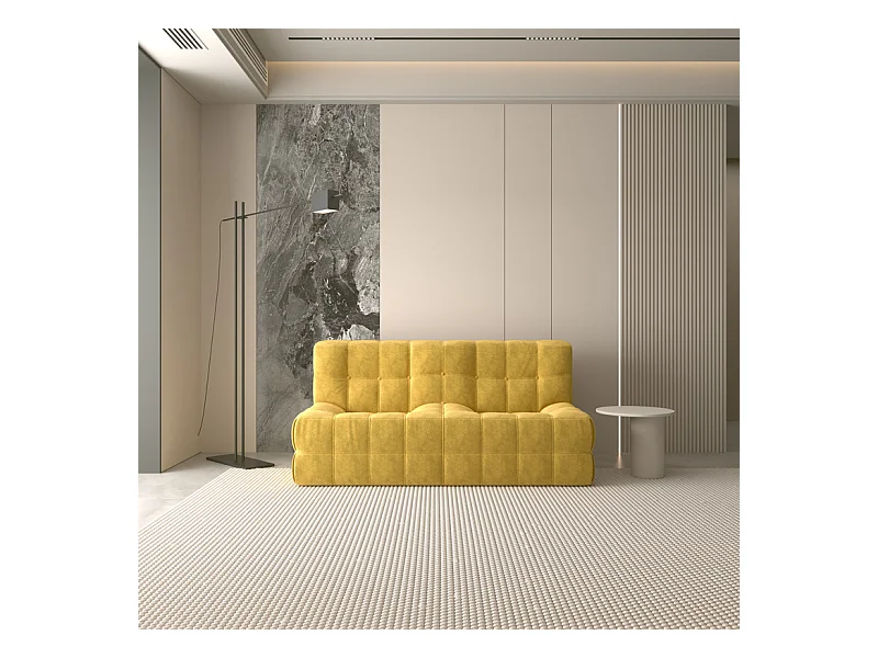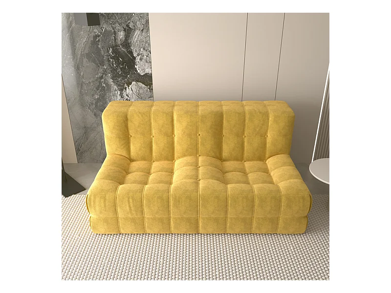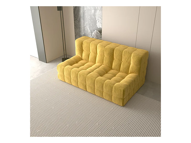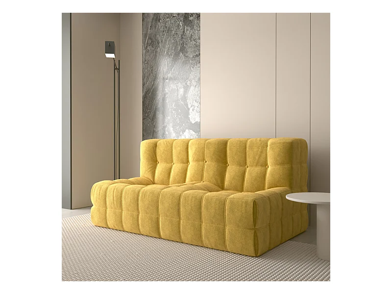 Canapé 2 places en tissu - 60cm assise profonde - ergonomique - charge max 250kg - 162x96x75cm - Jaune