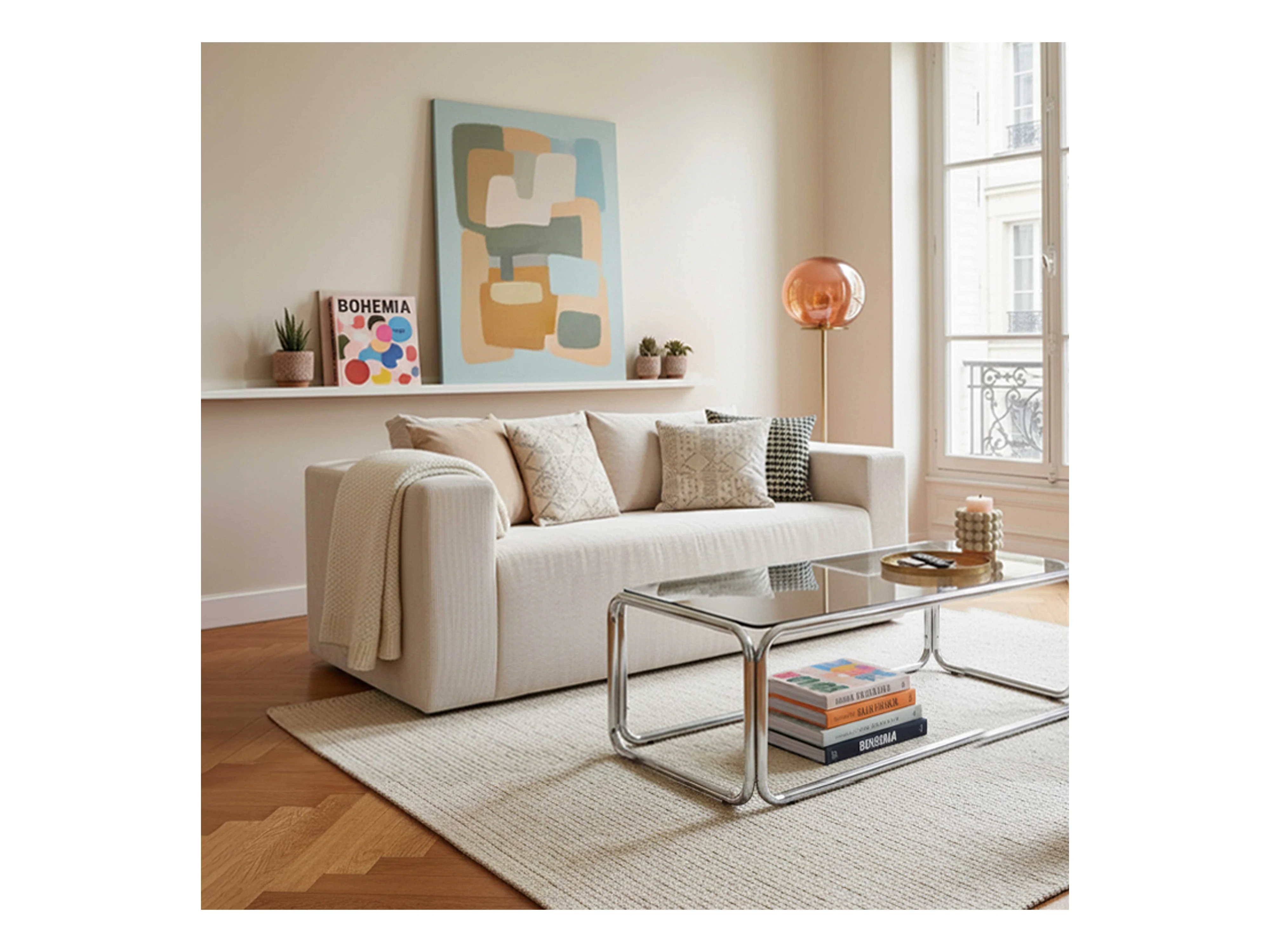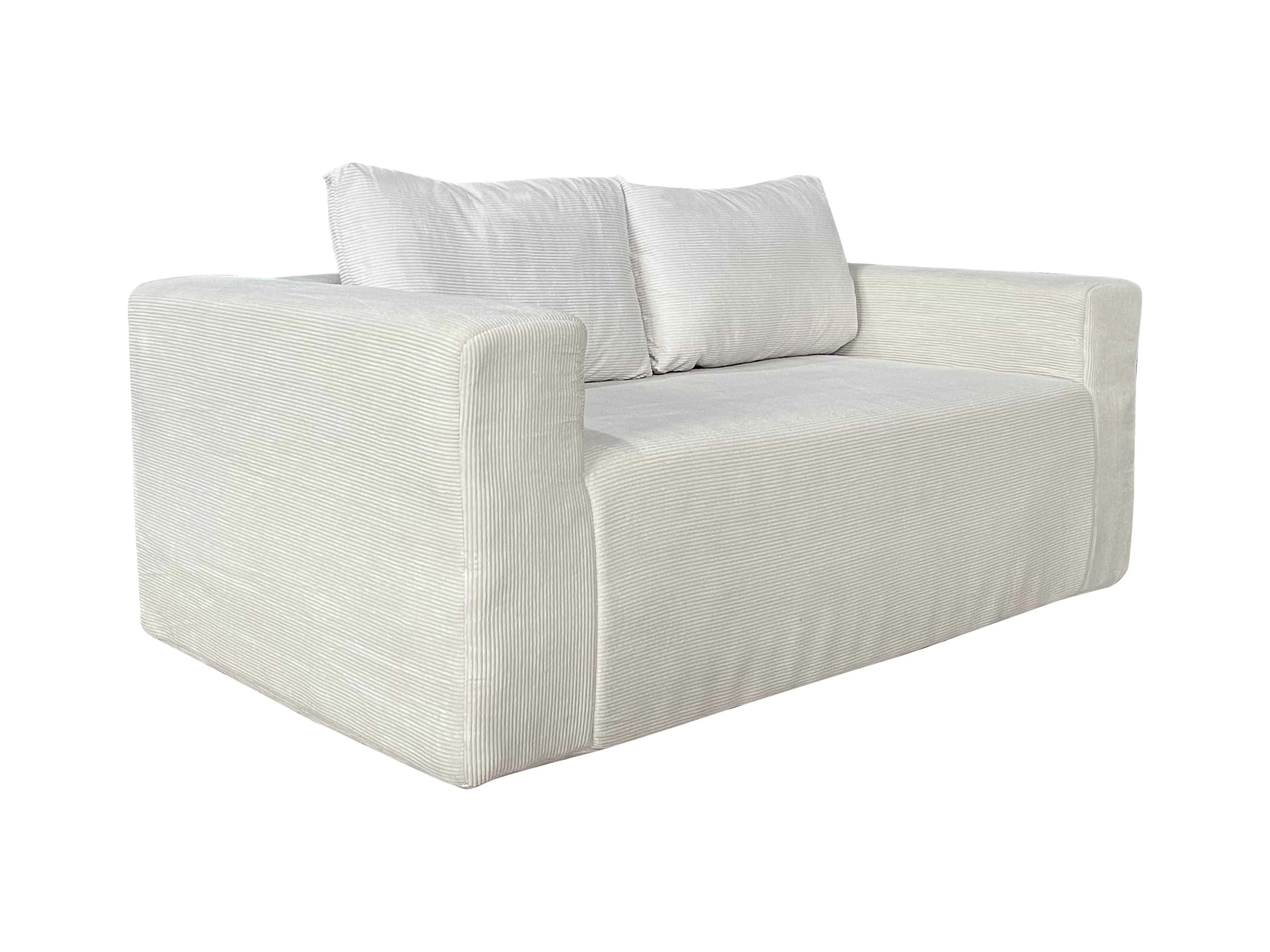 Canapé 2 places en tissu côtelé avec coussins ecru