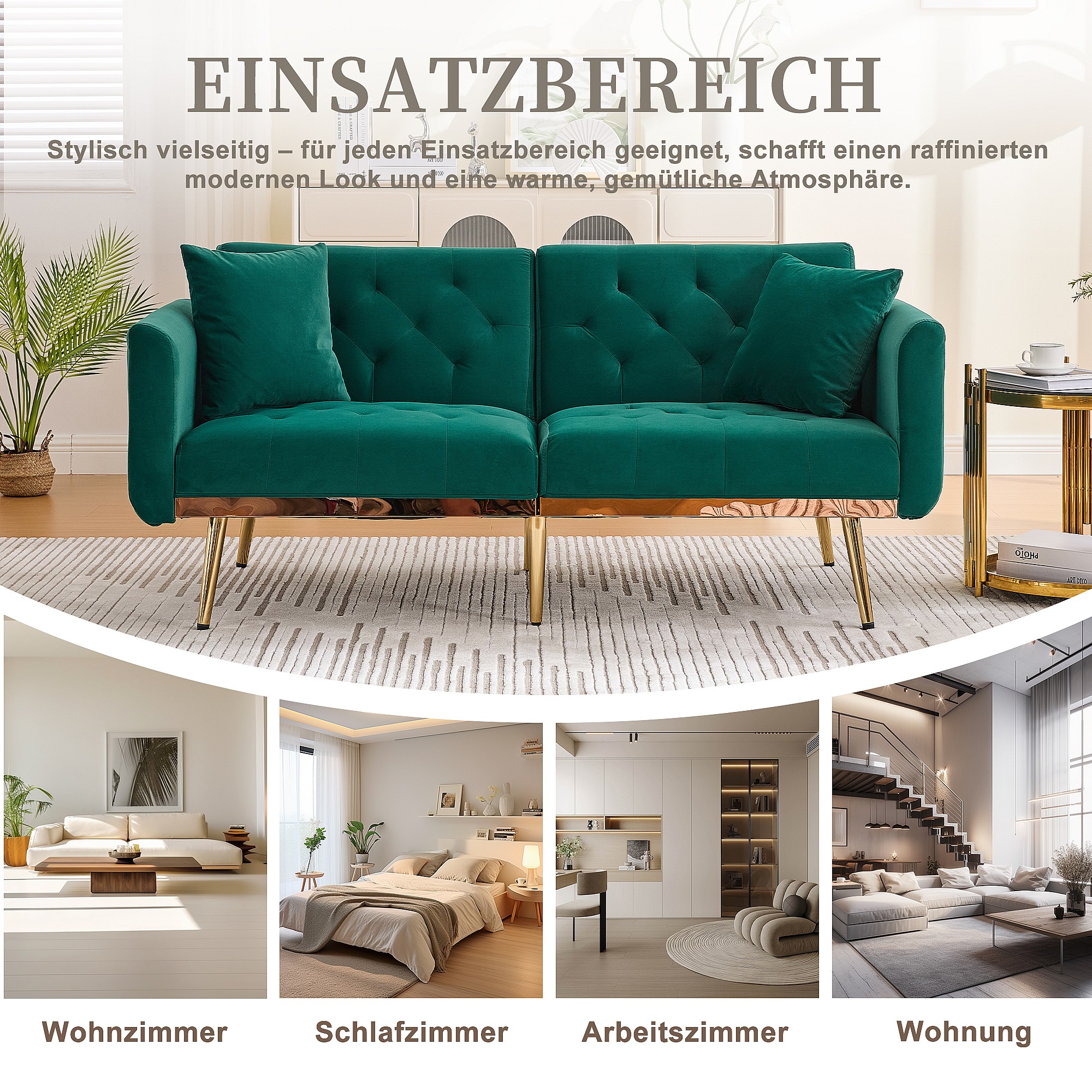 Canapé 2 Places en Tissu Velour Noir - avec dossier réglable et pieds dorés - Élégant et pratique pour votre salon