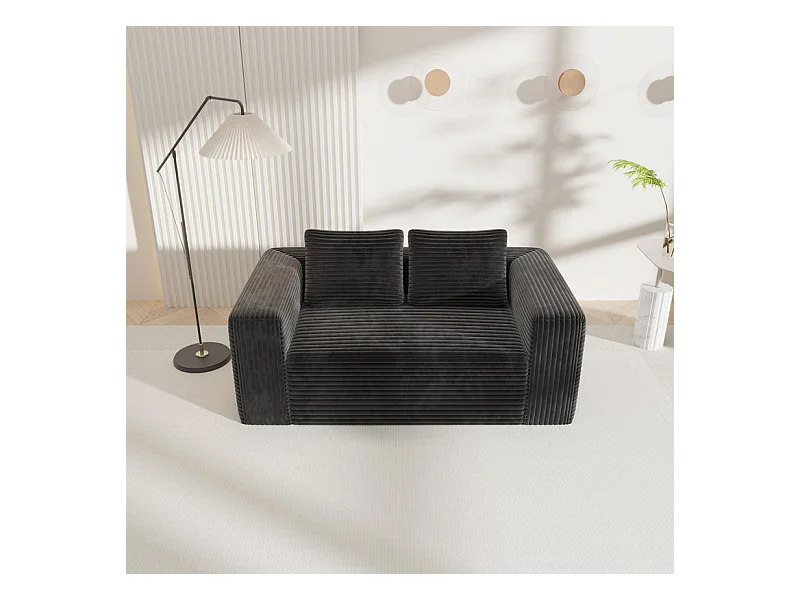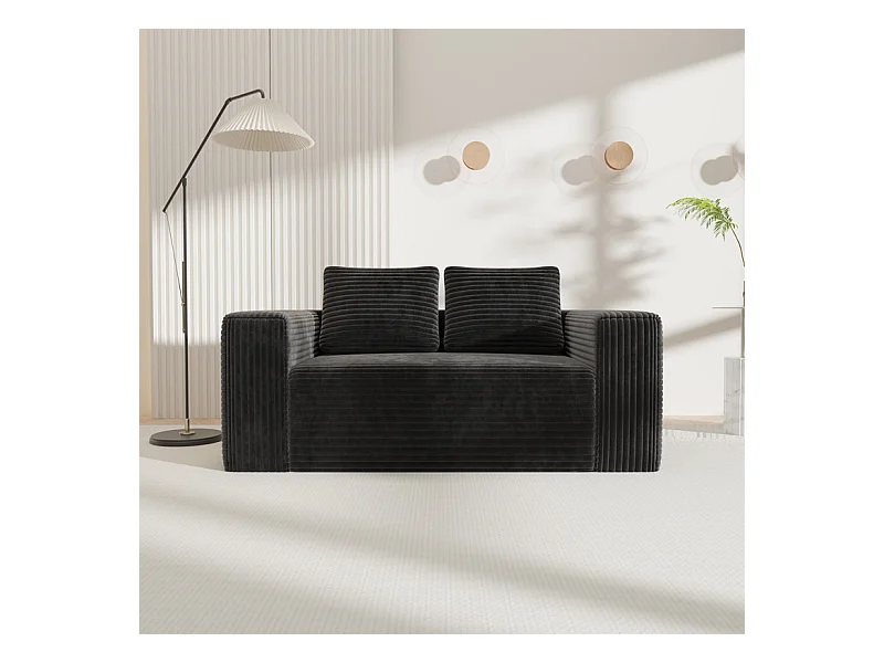 Canapé 2 places en velours côtelé - avec 2 oreillers - charge max 250kg - 160x63x88cm - Noir