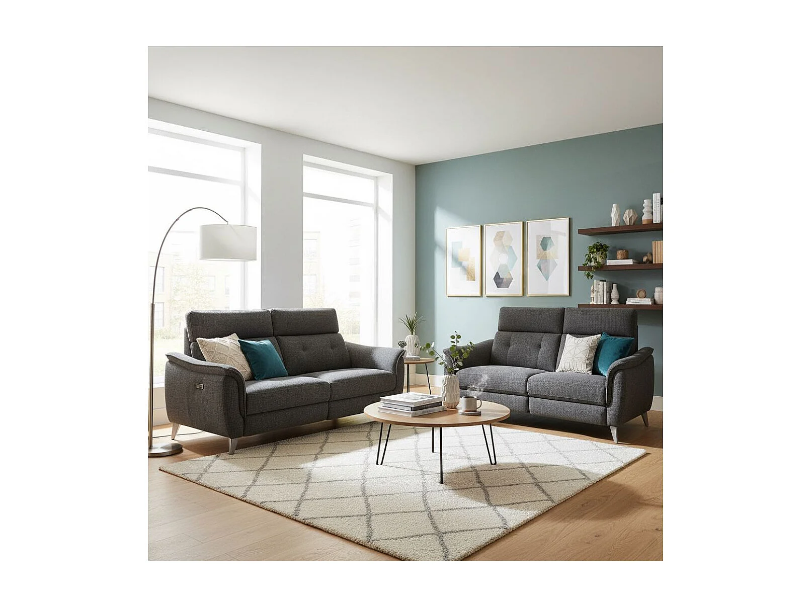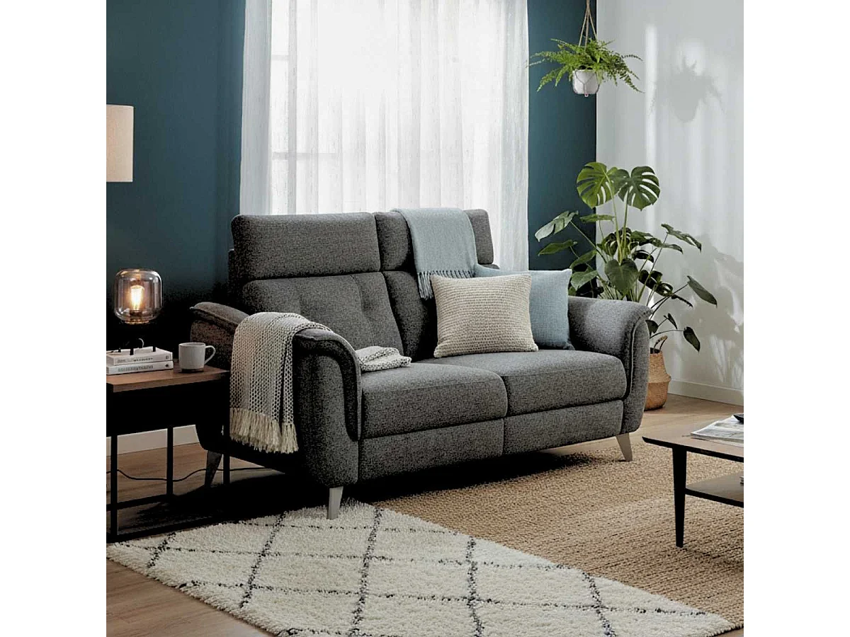 Canapé 2 places fixe tissu polyester chiné gris carbone - PLYM