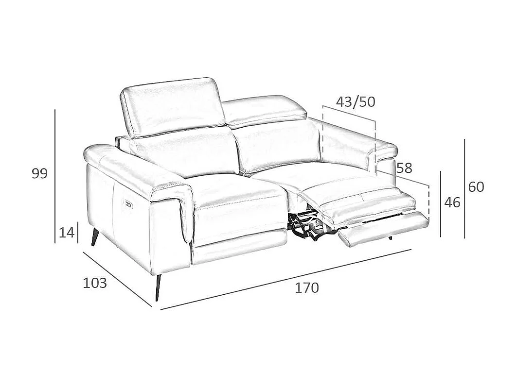 Canapé relax 2 places en cuir gris 6107 ANGEL CERDA