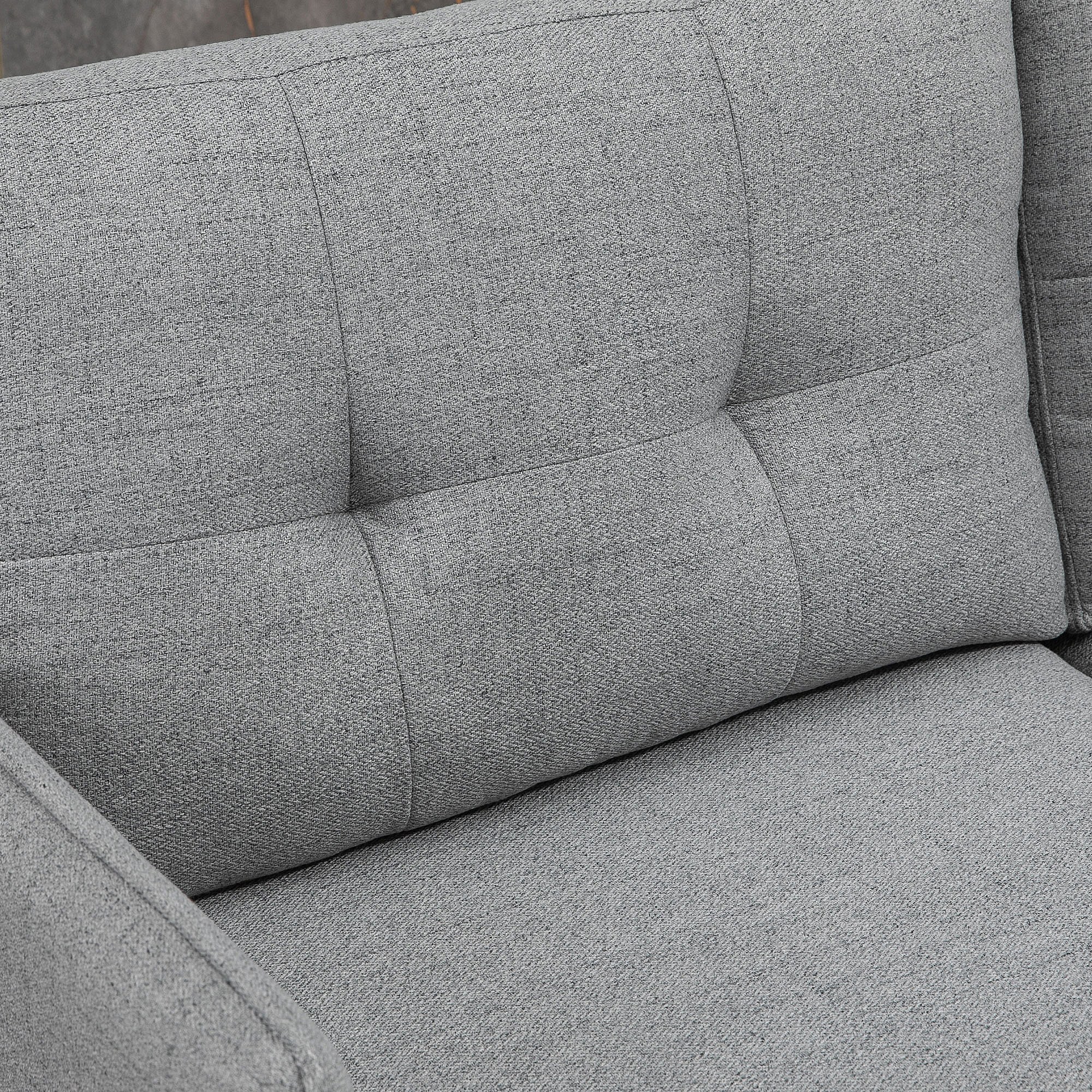 Canapé d'angle 3 places design scandinave - dossier effet capitonné, repose-pied amovible - piètement bois tissu gris clair