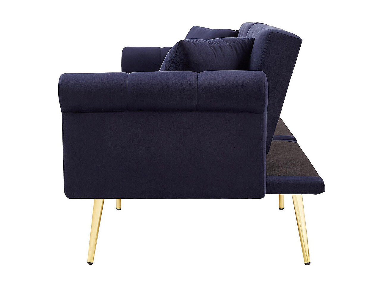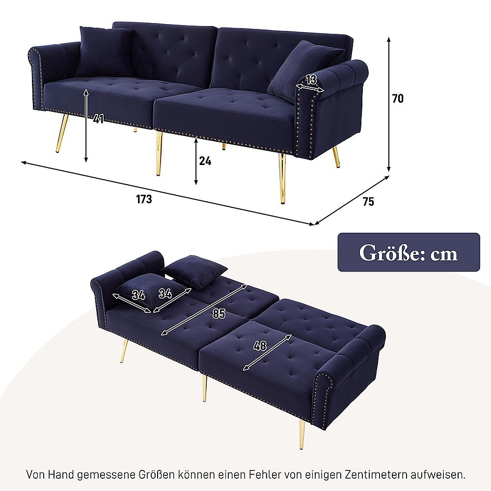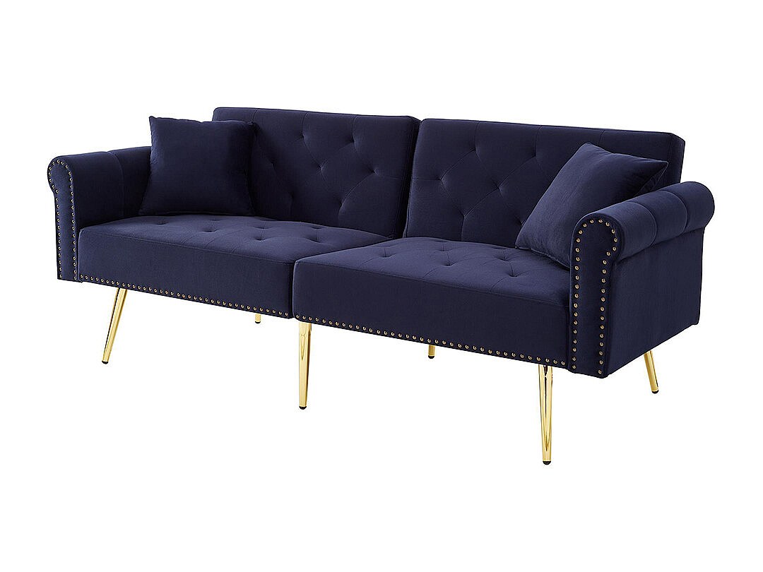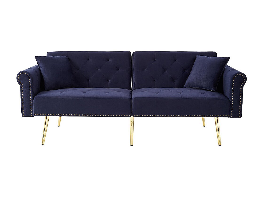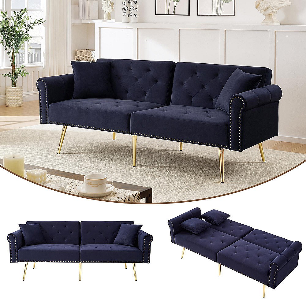Canapé 2 places velours dossier réglable 3 positions pieds dorés fonction couchage peu encombrant petites pièces bleu antique