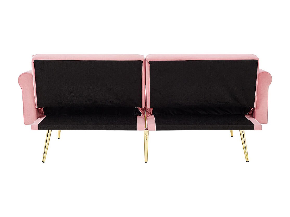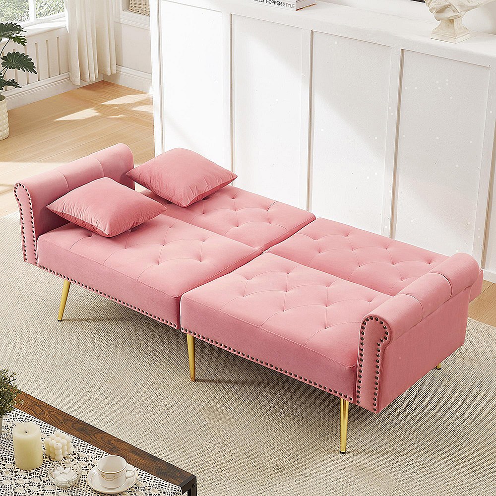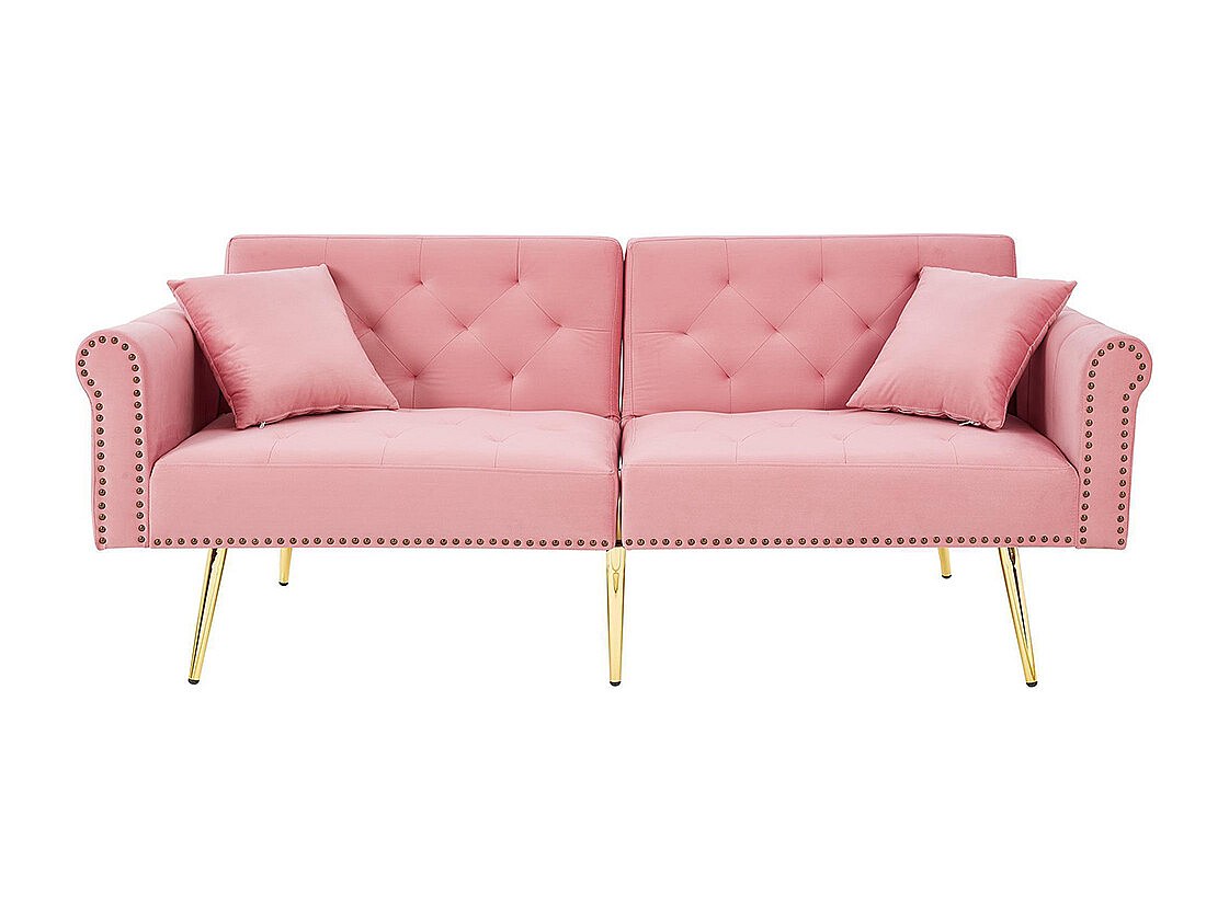 Canapé 2 places velours dossier réglable 3 positions pieds dorés fonction couchage peu encombrant petites pièces rose