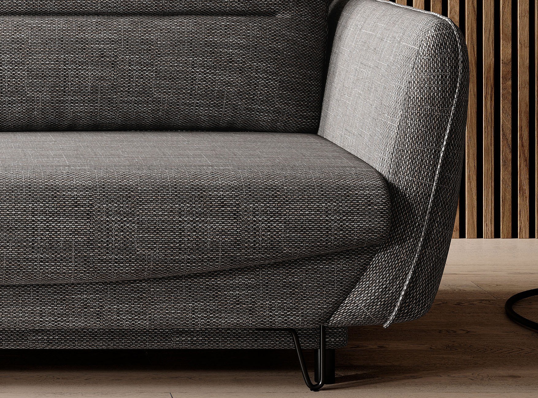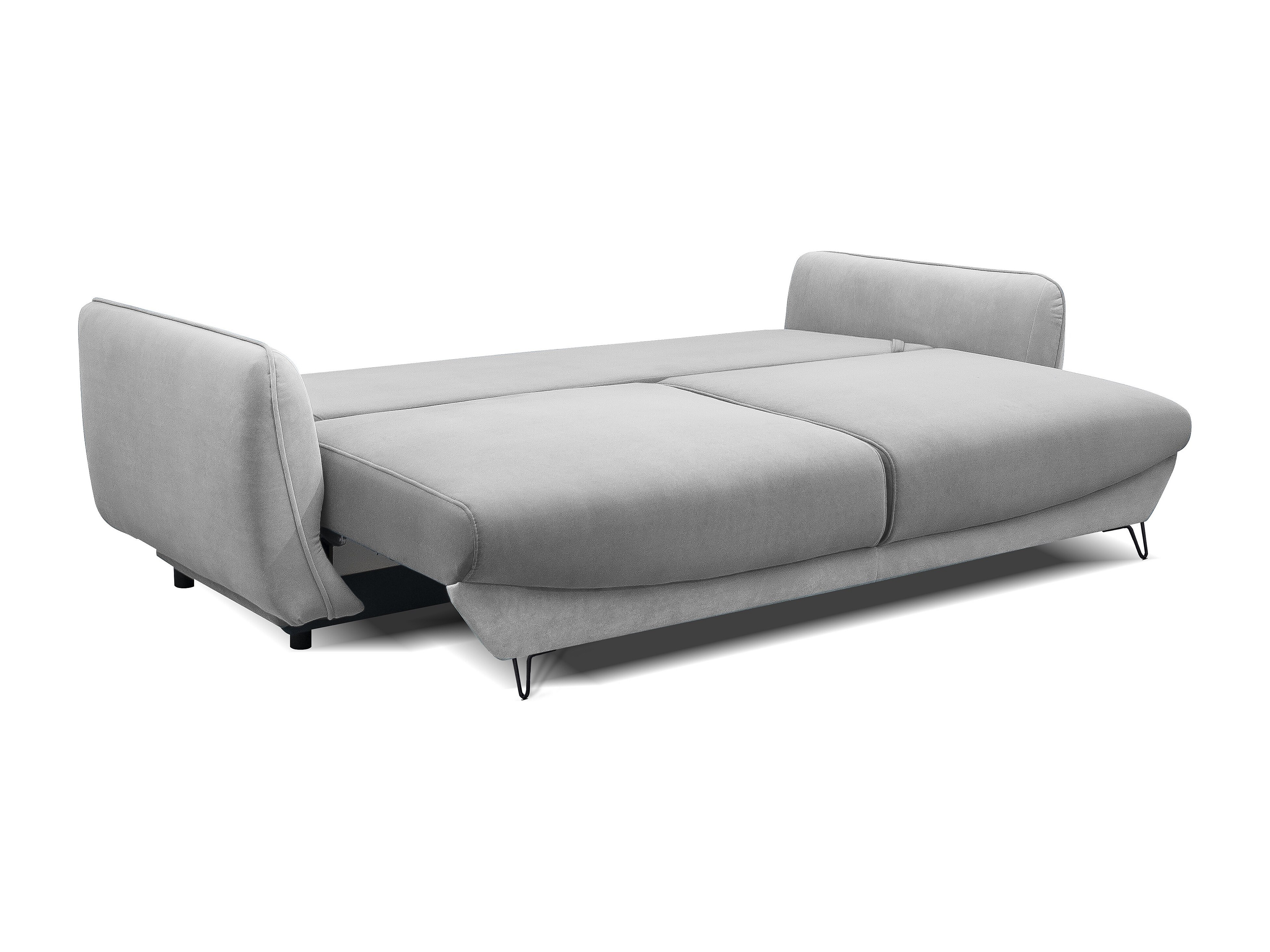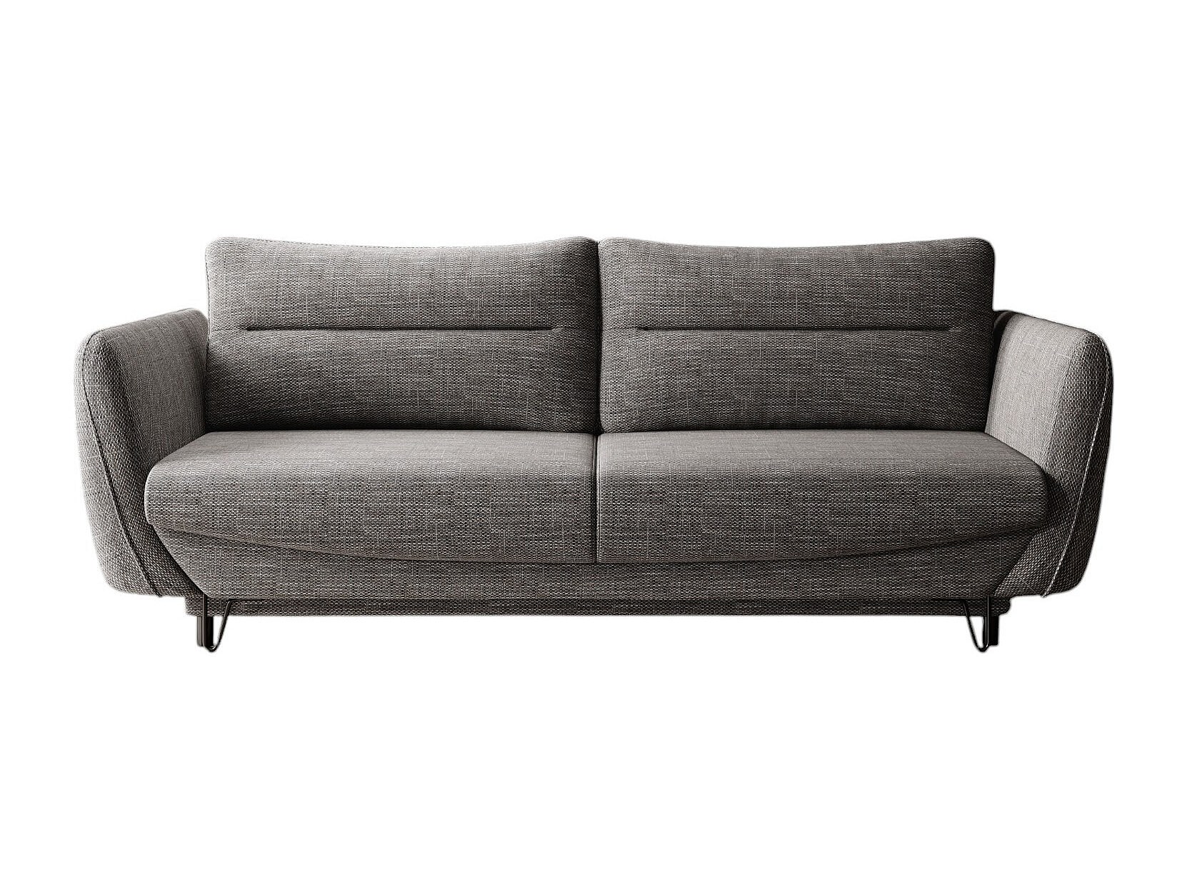 Canapé droit convertible tissu ZURIK - Coffre de rangement et pieds métal noir-Gris
