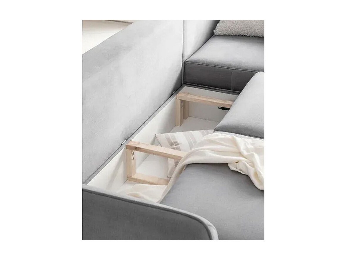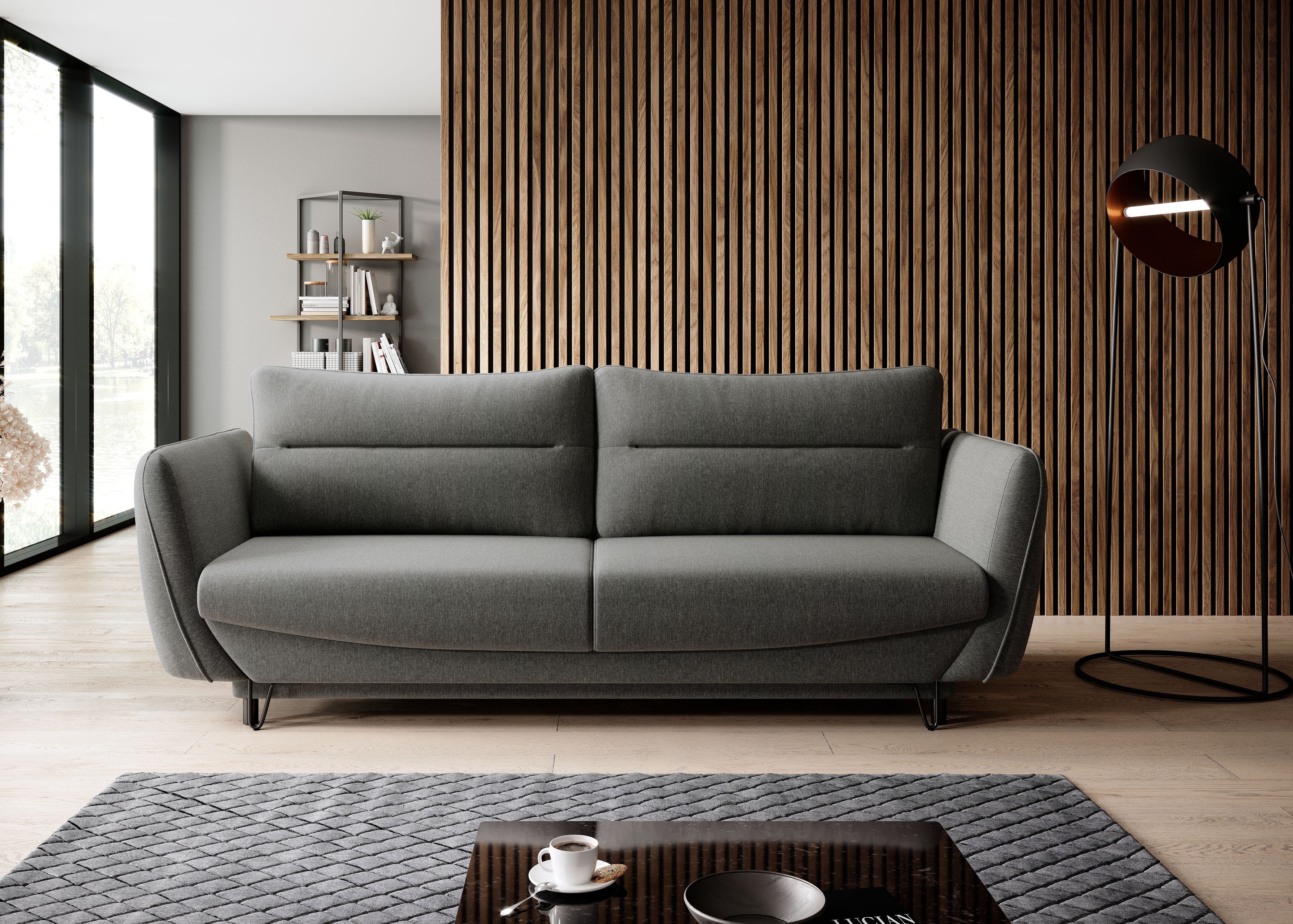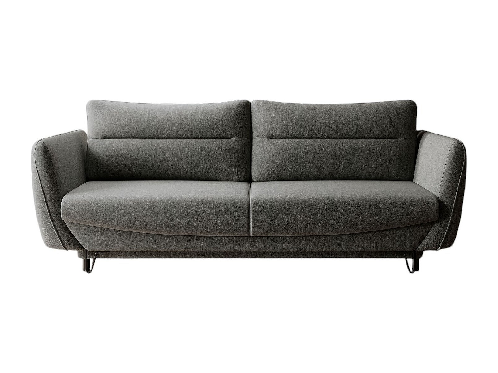 Canapé droit convertible tissu ZURIK - Coffre de rangement et pieds métal noir-Gris chiné